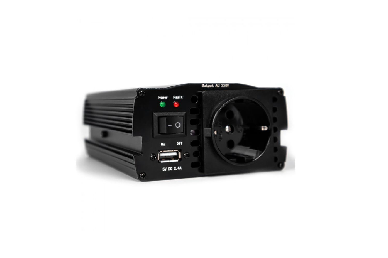 Le convertisseur de tension KAMAR 24 V/230 V (300/600 W) convertit le courant continu d'une batterie 24 V en courant alternatif 230 V, comme sur une prise secteur. Il permet d'alimenter des appareils 230 V tels que des éclairages, des chargeurs et de petits appareils électroniques hors réseau, dans un véhicule, un camping-car ou un bateau. Il offre une puissance continue de 300 W et une puissance de crête de 600 W, tandis qu'un rendement à pleine charge ≥ 85 % réduit les pertes d'énergie. Le convertisseur est équipé d'une prise allume-cigare intégrée et de pinces de batterie fournies.L'appareil se connecte directement à la batterie à l'aide des pinces incluses dans le kit. — Cette solution fournit une alimentation stable et permet une utilisation optimale de la puissance (par exemple, 300 W). Elle est destinée à une utilisation mobile, comme dans les véhicules, les camping-cars et les bateaux. L'onduleur est conçu pour fonctionner uniquement sur batterie, ne connectez pas de redresseurs, de régulateurs solaires ou de panneaux photovoltaïques à son entrée. Sélectionnez des charges pour une alimentation continue, tenez compte des courants d'appel et assurez une ventilation adéquate.