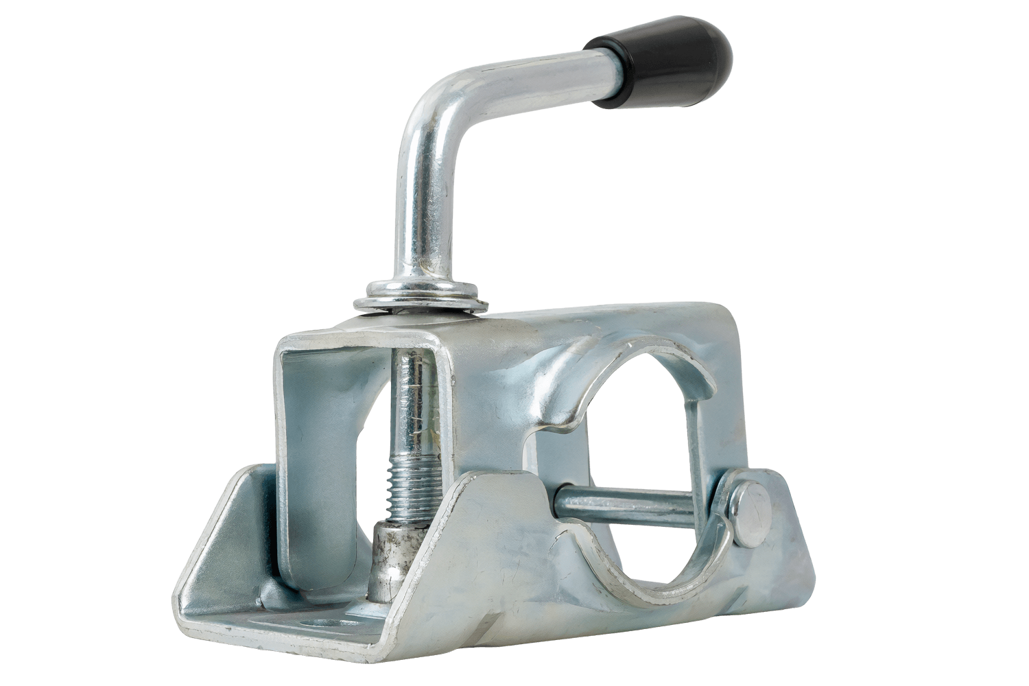 Cette pince est conçue pour le montage et le blocage des roues jockey sur les remorques cargo, les remorques porte-bateaux et les caravanes. Elle facilite le maintien du timon, l'attelage/dételage rapide de la remorque et ses manœuvres manuelles dans la cour, l'allée ou l'atelier. Elle permet de positionner la remorque en toute sécurité et de régler facilement la hauteur d'attelage. Pour plus de sécurité, vérifiez la pression du levier et l'état du tube de la roue jockey avant chaque trajet.