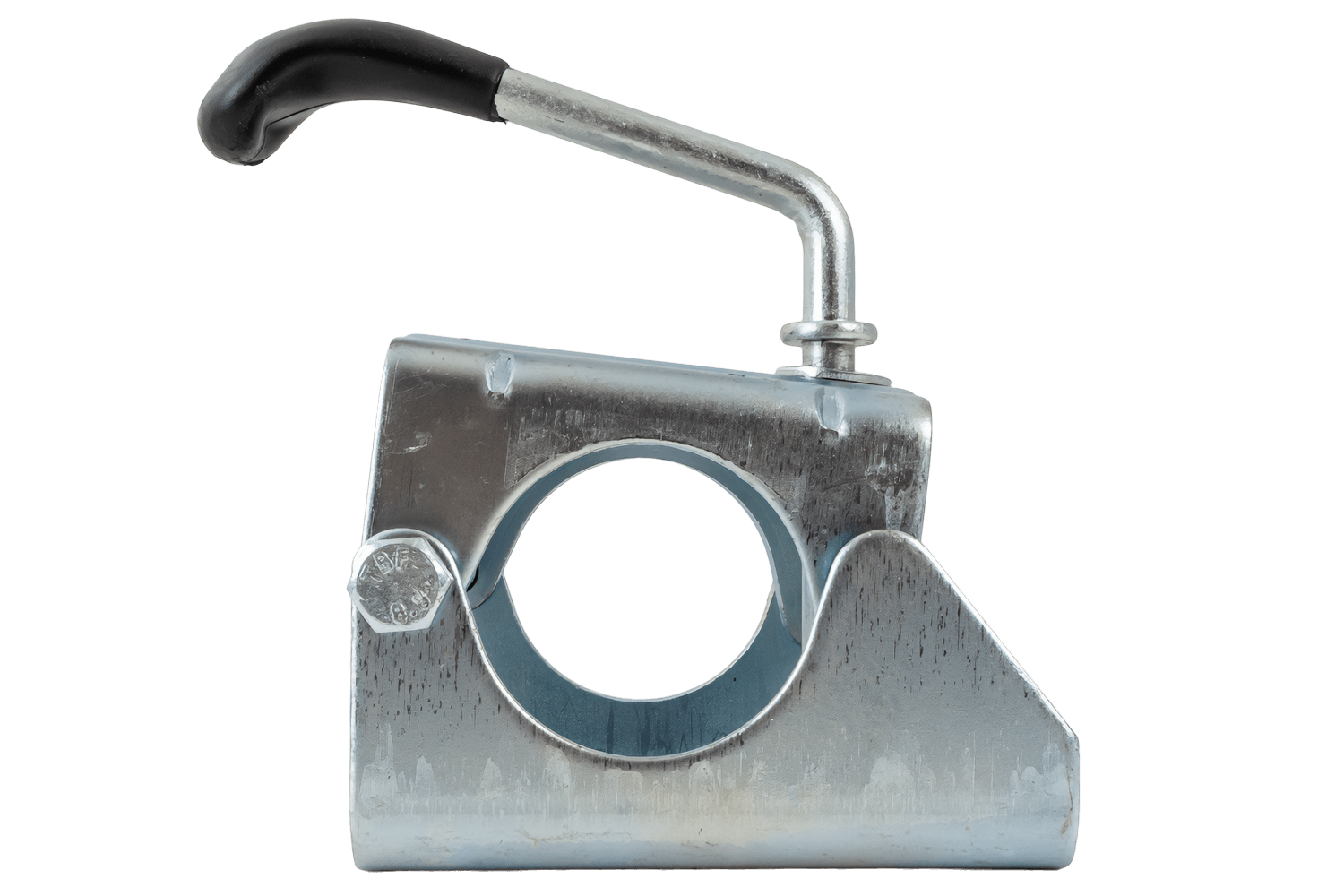 Le corps est en acier galvanisé, ce qui garantit une grande rigidité et une grande résistance aux charges lors des manœuvres de la remorque. L'électrogalvanisation protège l'élément de la corrosion dans des conditions d'utilisation normales (pluie, boue, sel de déneigement), garantissant ainsi à la pince sa fonctionnalité et son esthétique durables. Le levier ergonomique permet un serrage et un déverrouillage faciles d'une seule main.