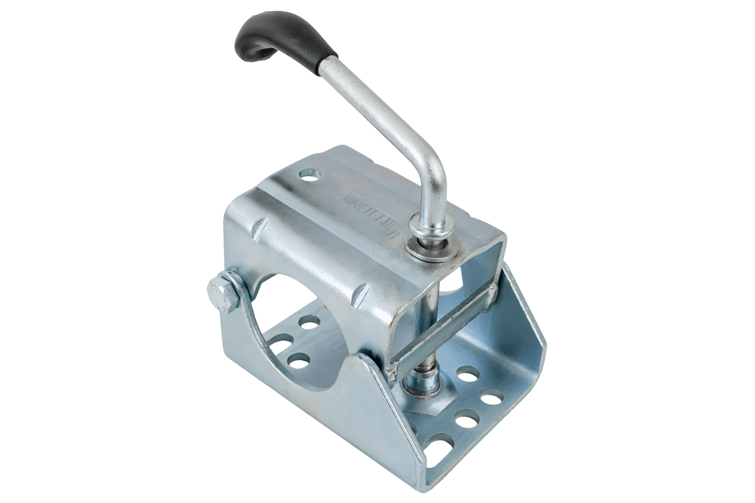 La bride de fixation pour roue jockey 4802879X de KNOTT permet de fixer des roues jockey avec un tube de 60 mm de diamètre. La base est dotée de trous de fixation espacés de 105 x 50 mm. mm et 70x50 et 11 mm de diamètre Permet de fixer rapidement le support au châssis ou au support de timon. Le levier de pression assure une bonne prise sur le tube, réduit les glissements et les vibrations, et permet un réglage rapide de la hauteur de la roue ou son démontage complet pour le transport ou l'entretien.