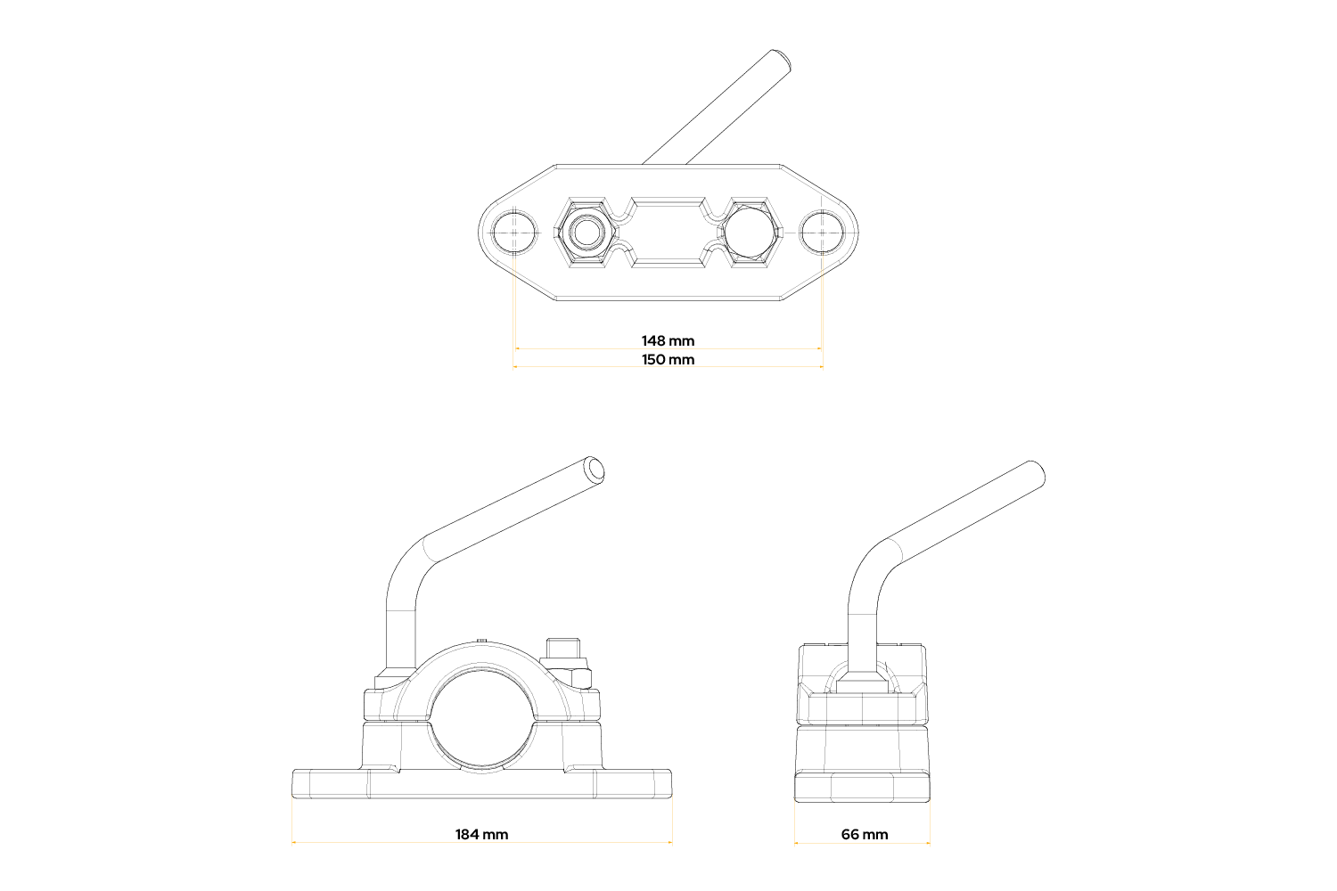 Collier de fixation pour roue jockey 6F5090.001 de KNOTT permet de fixer des roues jockey avec un tube ondulé de 48 mm de diamètre. La base est dotée de trous de fixation espacés de 147 mm et d'un diamètre de 19 mm. Permet de fixer rapidement le support au châssis ou au support de timon. Le levier de pression assure une bonne prise sur le tube, réduit les glissements et les vibrations, et permet un réglage rapide de la hauteur de la roue ou son démontage complet pour le transport ou l'entretien.