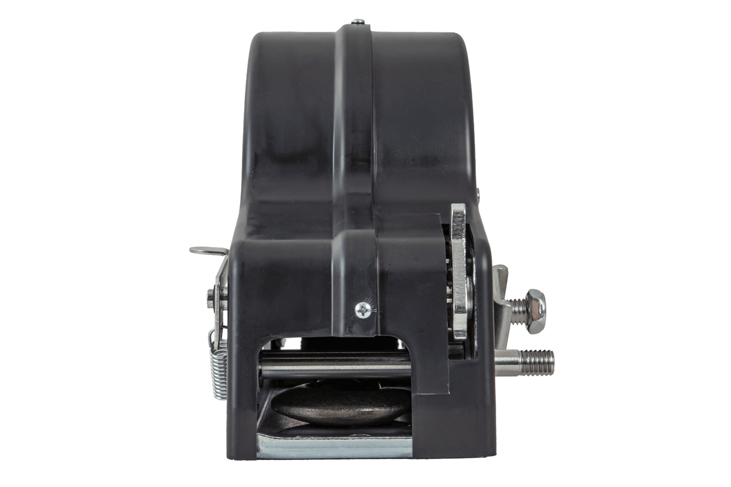 Le boîtier protège le mécanisme de la saleté, tandis que le tambour et l'engrenage robustes assurent un rembobinage fluide de la bande et un contrôle précis de la force. Le crochet d'extrémité facilite la fixation rapide de la charge ou de l'anneau de levage. Le rapport d'engrenage réglable vous permet d'adapter la cadence de travail à vos besoins : plus rapide pour les charges légères, plus lent et avec plus de force pour les charges plus lourdes.