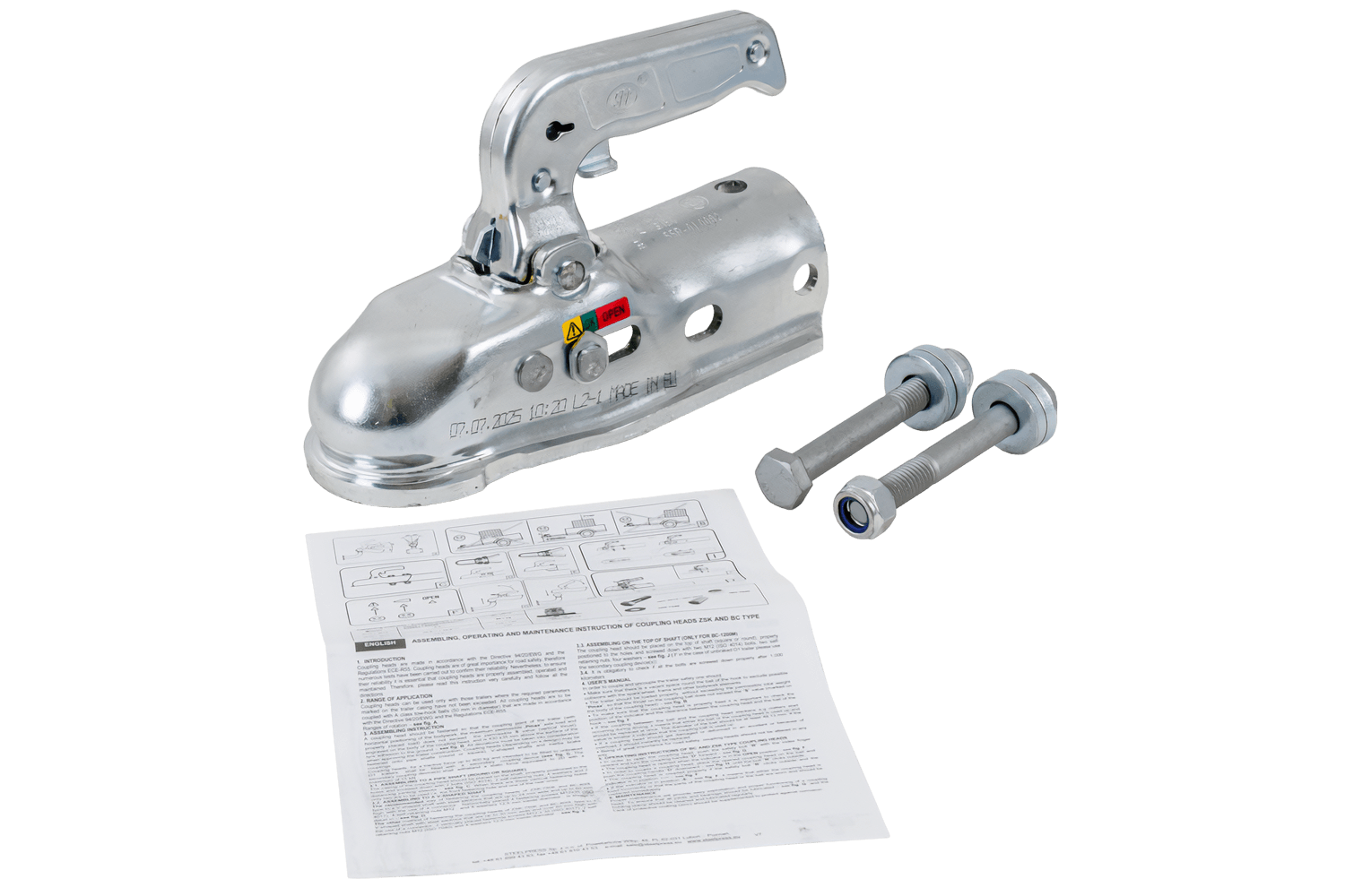 - L'attelage à boule BC-3000.1D-00-00 est conçu pour les remorques jusqu'à 3 000 kg. La tête d'attelage est montée sur un timon tubulaire et est fournie avec des adaptateurs permettant la compatibilité avec les dispositifs à inertie dotés d'un tube coulissa