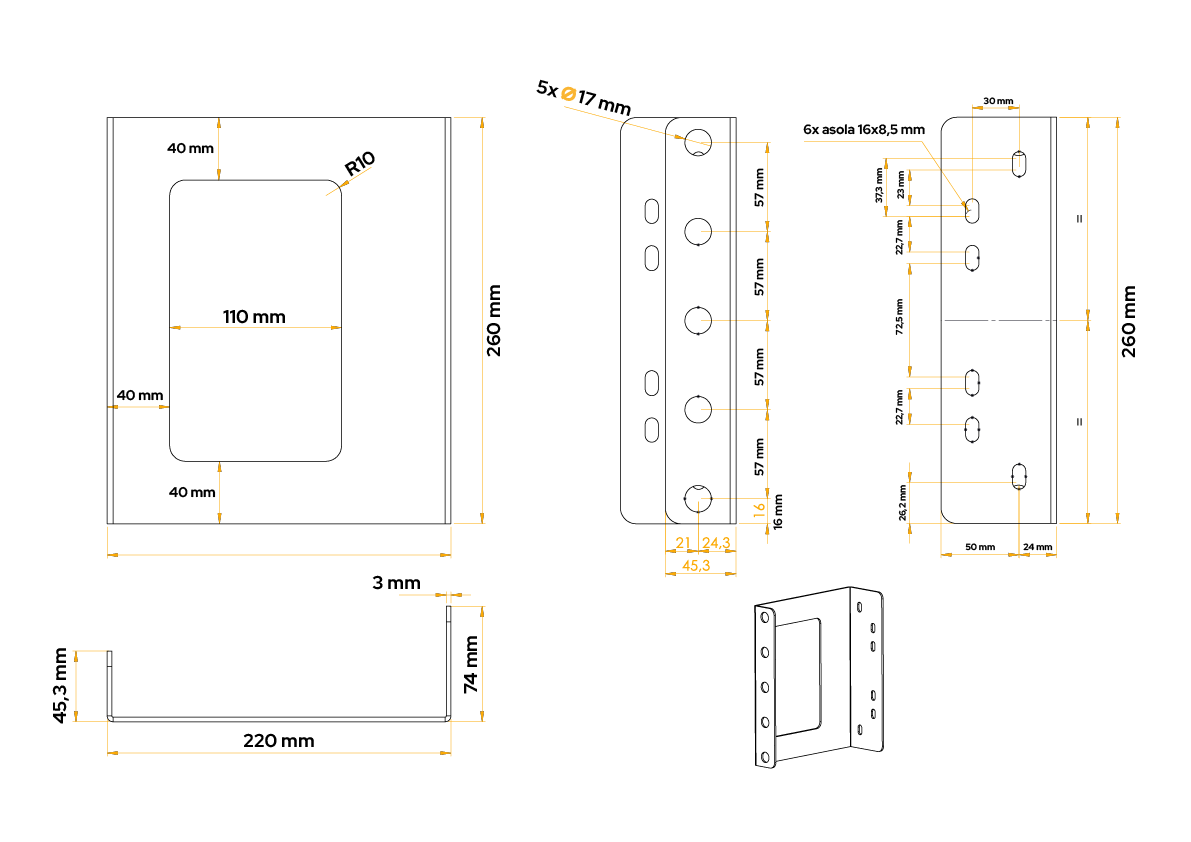 - Cette paire de supports galvanisés DAKEN (88501) est conçue pour une installation stable des boîtiers d'extincteurs AMARANT, REGON et STRIKE. Dimensions d'un support : hauteur 260 mm, profondeur 220 mm, épaisseur 3 mm.