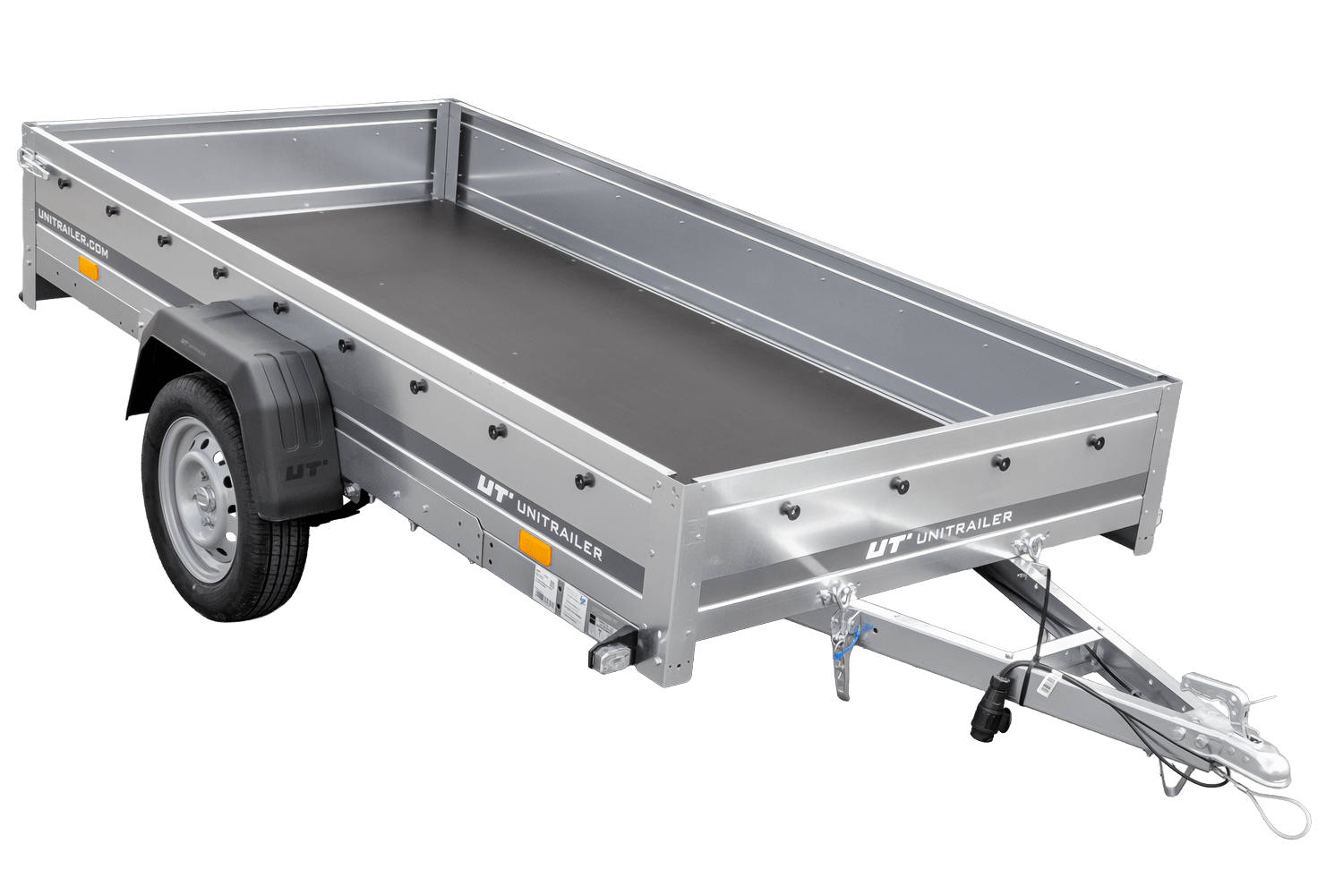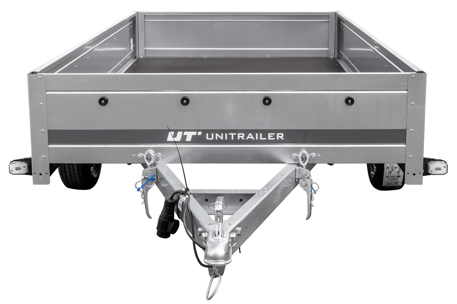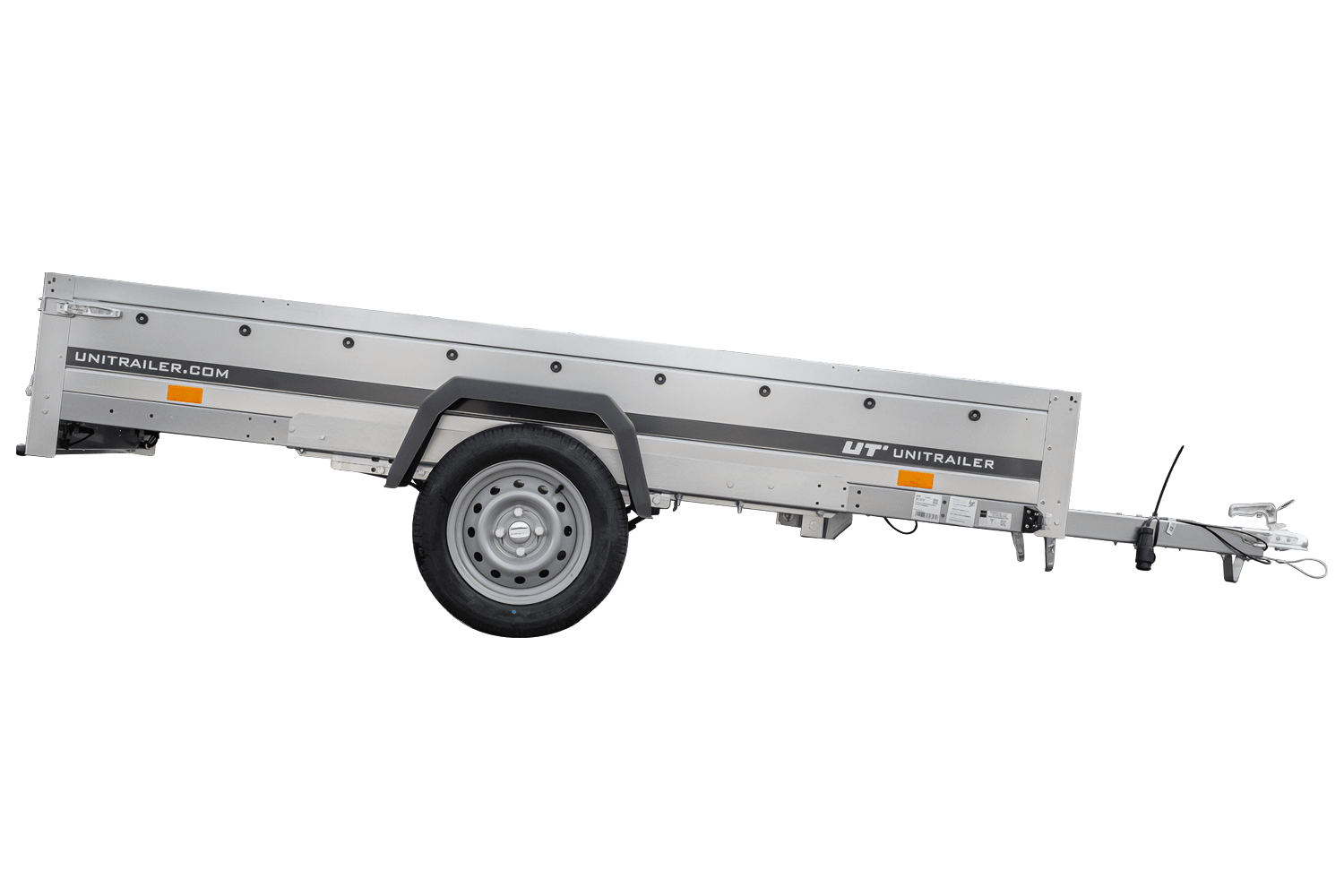 Chaque élément de la remorque est conçu pour durer et offrir une fiabilité optimale. Le châssis et les côtés, ridelles en acier galvanisé sont résistants à la corrosion et ne nécessitent aucun entretien particulier pendant de nombreuses années. Le plancher en contreplaqué imperméable de 9 mm, doté d'un revêtement antidérapant, garantit un transport en toute sécurité, quelles que soient les conditions météorologiques. La structure est renforcée par trois traverses sous le plancher, qui stabilisent la surface de chargement et empêchent toute déformation.