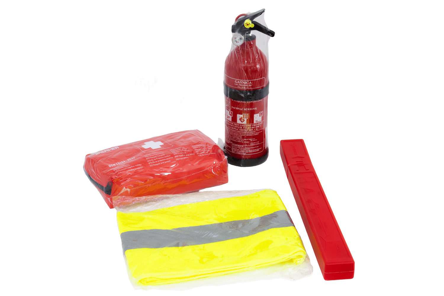 Kit premier secours HERMON : trousse de premiers secours, extincteur, triangle, gilet