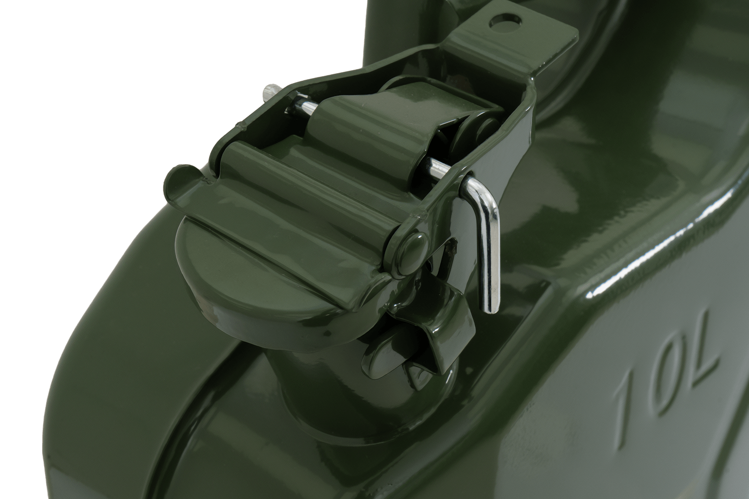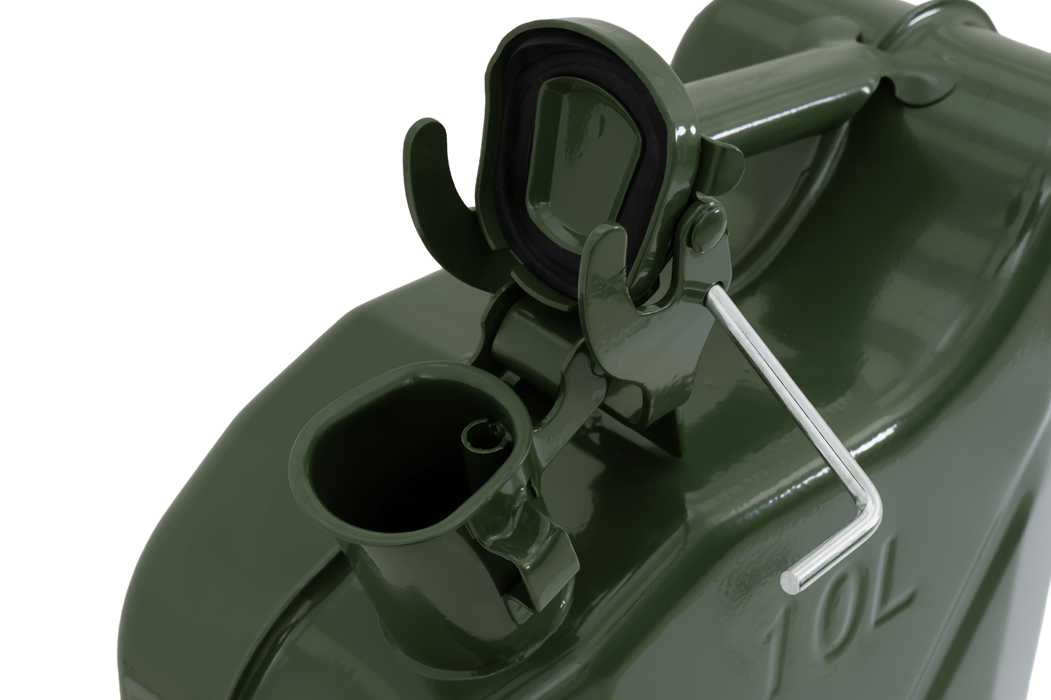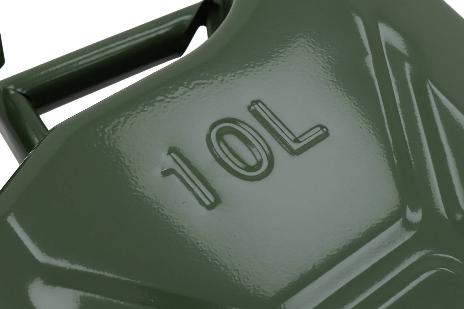 Bidon robuste de 10 litres en acier thermolaqué de haute qualité, résistant à la corrosion, aux dommages mécaniques et au carburant. Doté d'un joint hermétique qui empêche les fuites et protège le contenu de l'évaporation et de la contamination.