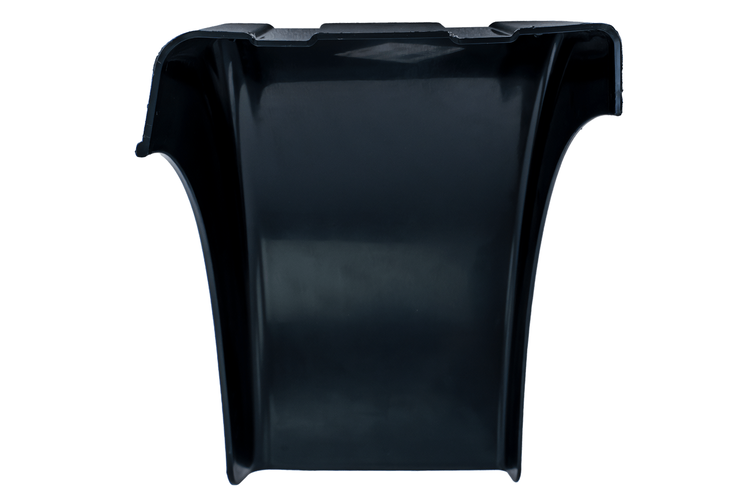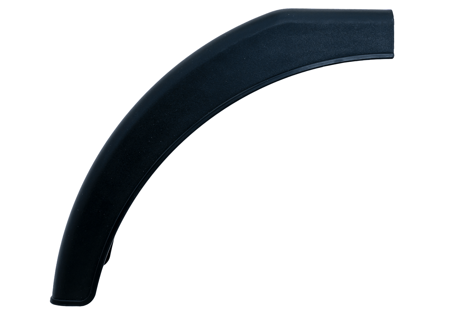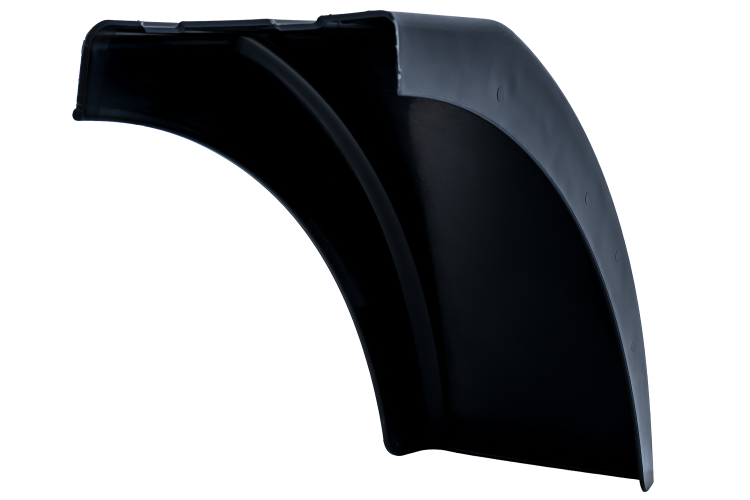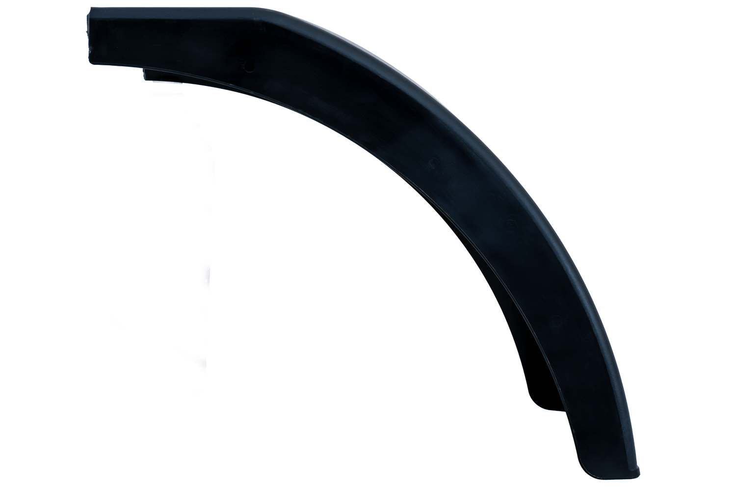 Le demi-aile droit DOMAR DR1012201 se monte sur le côté droit du véhicule (vu dans le sens de la marche). Compact et robuste, ce composant est conçu pour protéger les roues des remorques, des engins agricoles ou de chantier légers, et autres véhicules utilitaires. Avec ses dimensions de 384 mm de long, 200 mm de large et 326 mm de haut, il est idéal pour les zones nécessitant une protection efficace contre l'eau, la boue et les projections de pierres, tout en offrant un gain de place. L'absence de trous de fixation d'origine permet à l'utilisateur d'adapter librement les points de fixation à la conception spécifique du véhicule. Son fond plat, doté d'un gaufrage supplémentaire pour rigidifier l'aile, permet une fixation facile directement sur le châssis, garantissant une installation rapide et pratique.
