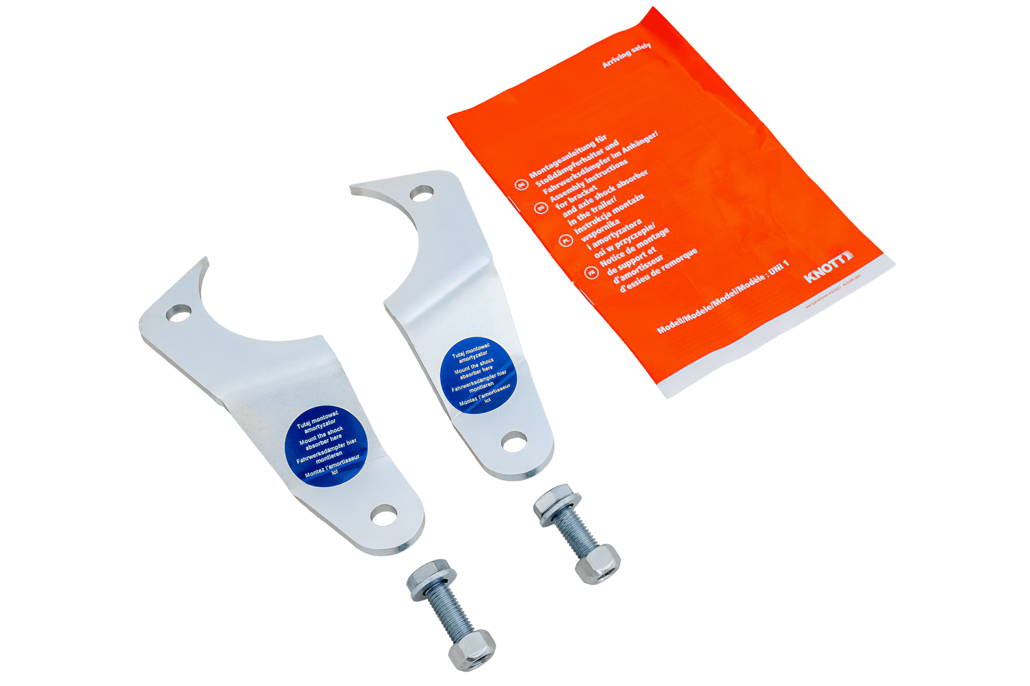 - Kit fixation d'amortisseur, pour l'essieu KNOTT VGB8-18. Montage sûr et stable des amortisseurs des deux côtés de l'essieu. Fixations droite et gauche ainsi qu'un jeu de vis. Il garantit durabilité, sécurité et un amortissement efficace des vibrations.