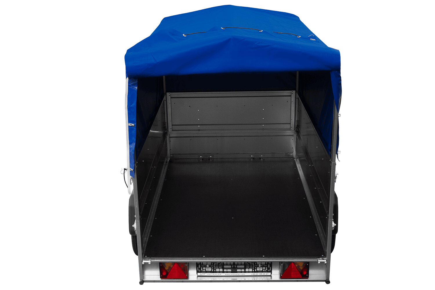 Le châssis de la remorque présentée mesure 80 cm de haut à son point le plus haut et possède un toit à pignon pour une meilleure évacuation de l'eau et de la neige pendant la conduite. Il est construit en poutres d'acier très robustes, protégées contre la rouille par galvanisation. Le châssis s'assemble à l'aide des vis fournies. La bâche est fabriquée dans un matériau épais et imperméable , et même une pluie prolongée ne la fera pas fuir. Un cordon élastique avec crochets est également fourni pour une tension rapide. La bâche est dotée d'une ouverture à l'arrière pour faciliter le chargement et le déchargement de la remorque. Des panneaux latéraux BIS supplémentaires augmentent considérablement l'espace de chargement, permettant le transport en toute sécurité de marchandises plus volumineuses ou de matériaux encombrants. Grâce à eux, la hauteur totale de l'ensemble avec le châssis H-800 et la bâche bleue atteint 150 cm , offrant une capacité utile exceptionnellement importante. Comme le reste de la remorque, la bâche est fabriquée en acier galvanisé résistant à la corrosion, garantissant une durabilité à long terme et une apparence esthétique. Associés à une structure robuste et à une bâche étanche et bien tendue, ils constituent un ensemble de transport polyvalent et solide, idéal pour un usage domestique quotidien comme pour des applications professionnelles.