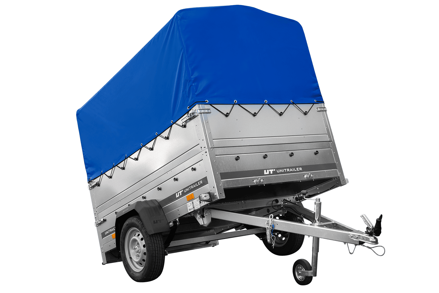 Remorque légère sur ressorts 200x125 UNITRAILER GARDEN 201/R KIPP avec côtés BIS, châssis H-800 et bâche bleue