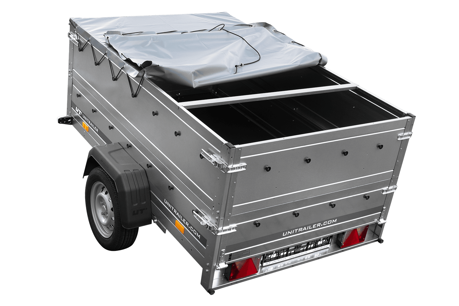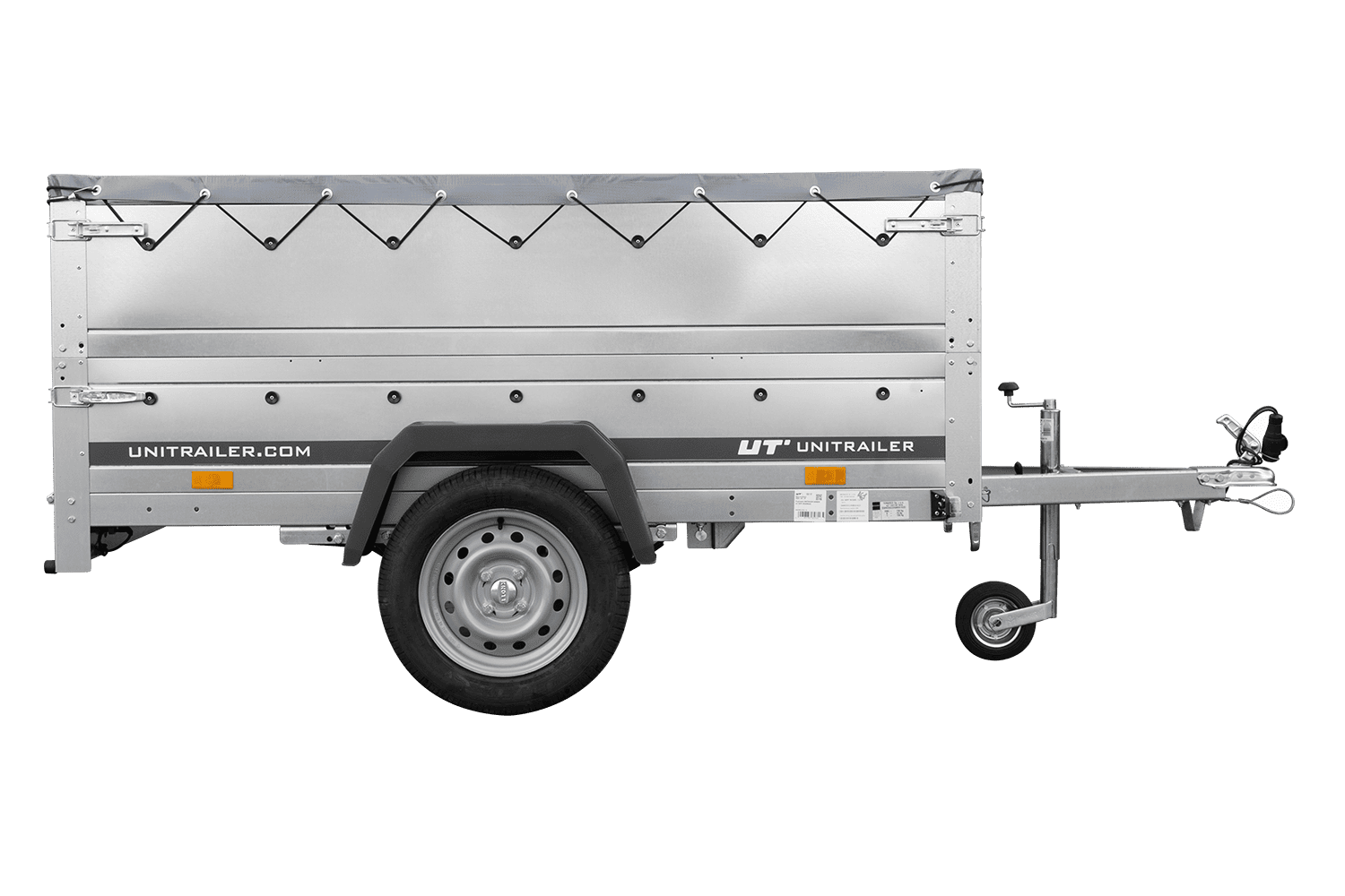 Remorque légère sur ressorts 200x125 UNITRAILER GARDEN 201/R KIPP avec ridelles BIS, cadre H-0 et bâche grise