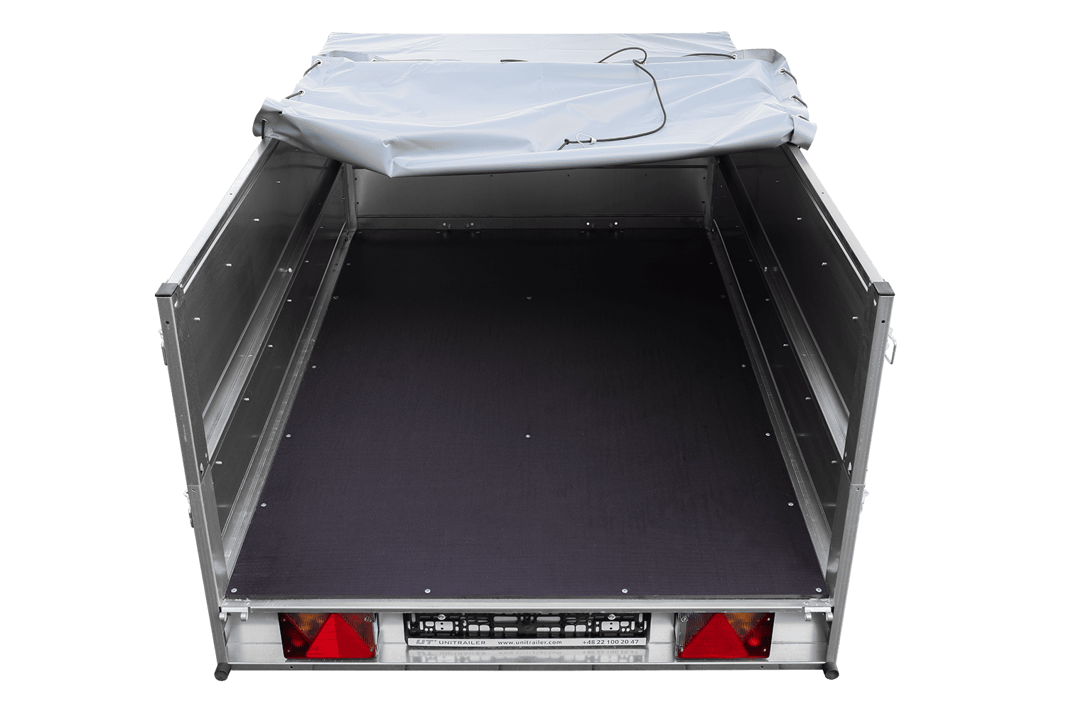 - La remorque à un essieu UNITRAILER GARDEN 201/R KIPP est équipée de ressorts robustes et d'une zone de transport de 200 x 125 cm. L'ensemble comprend des ridelles BIS, un châssis H-0 et une bâche grise.