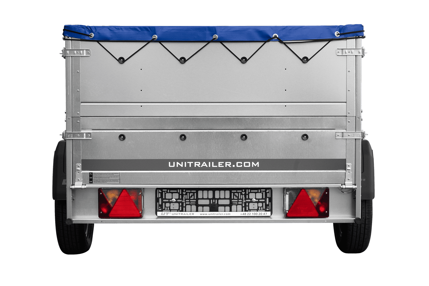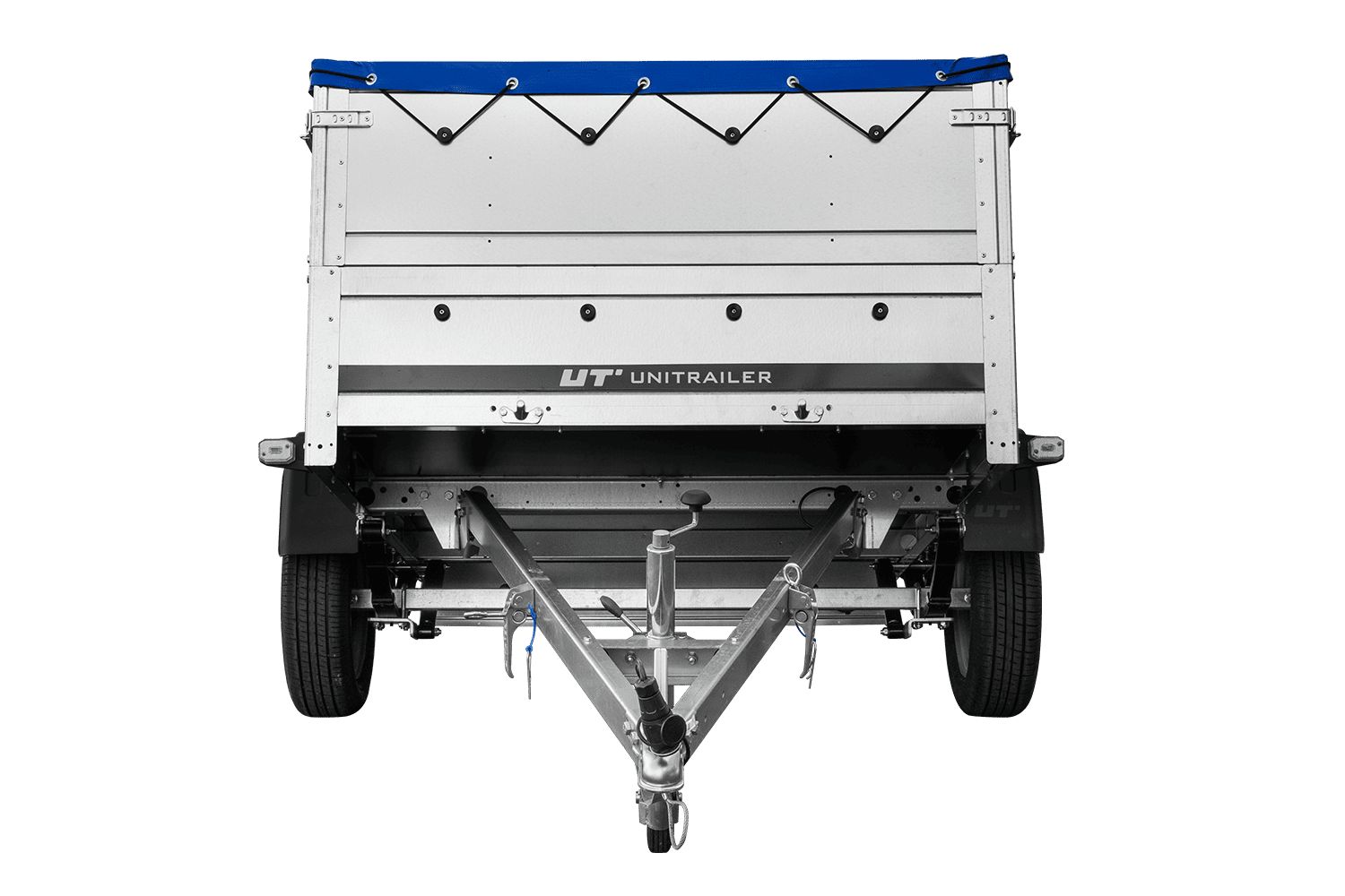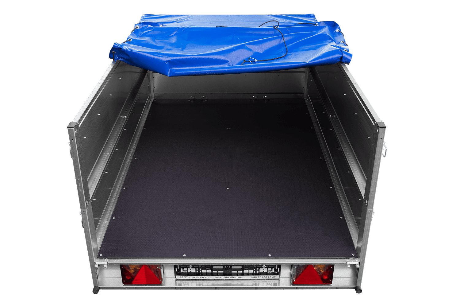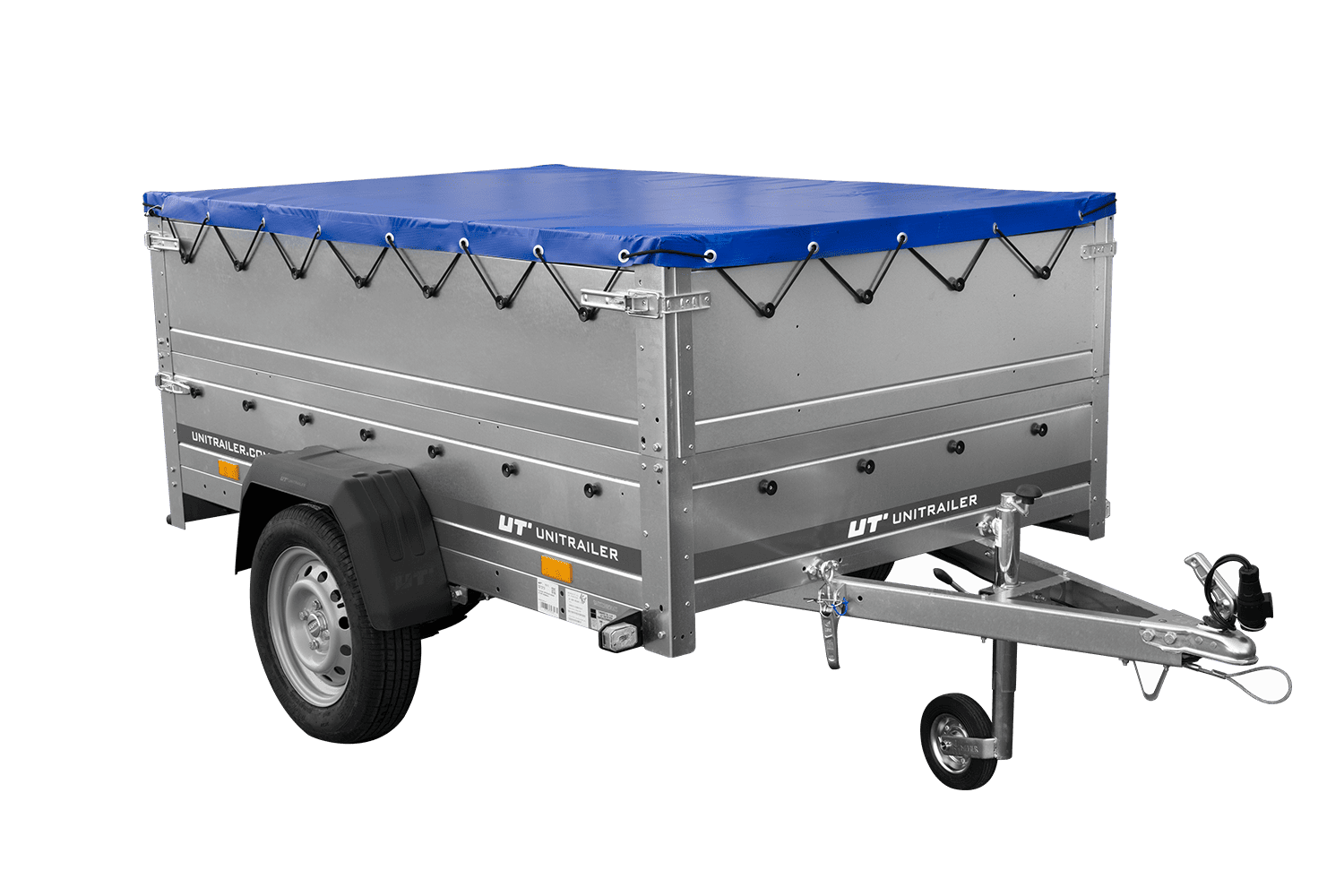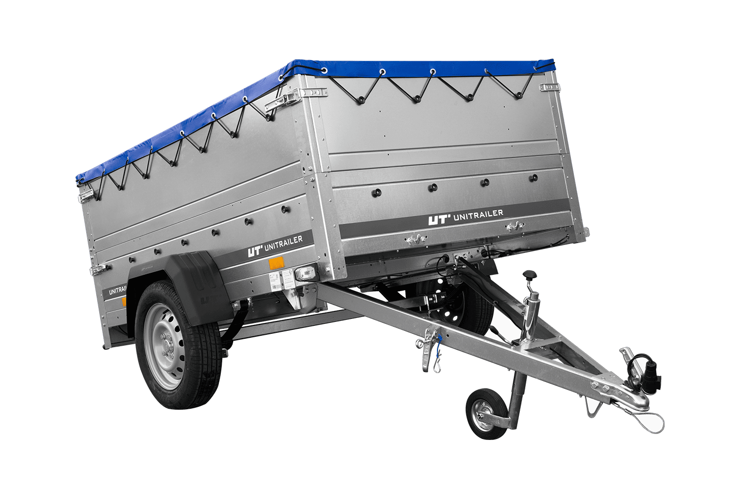 Remorque légère sur ressorts 200x125 UNITRAILER GARDEN 201/R KIPP avec côtés, ridelles BIS, châssis H-0 et bâche bleue