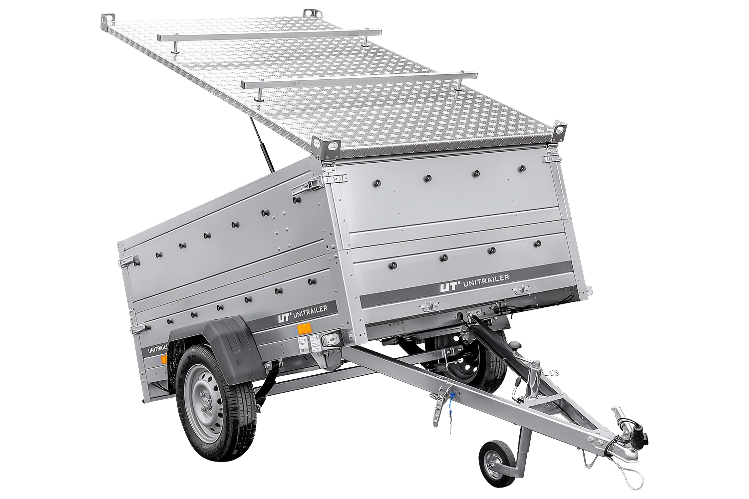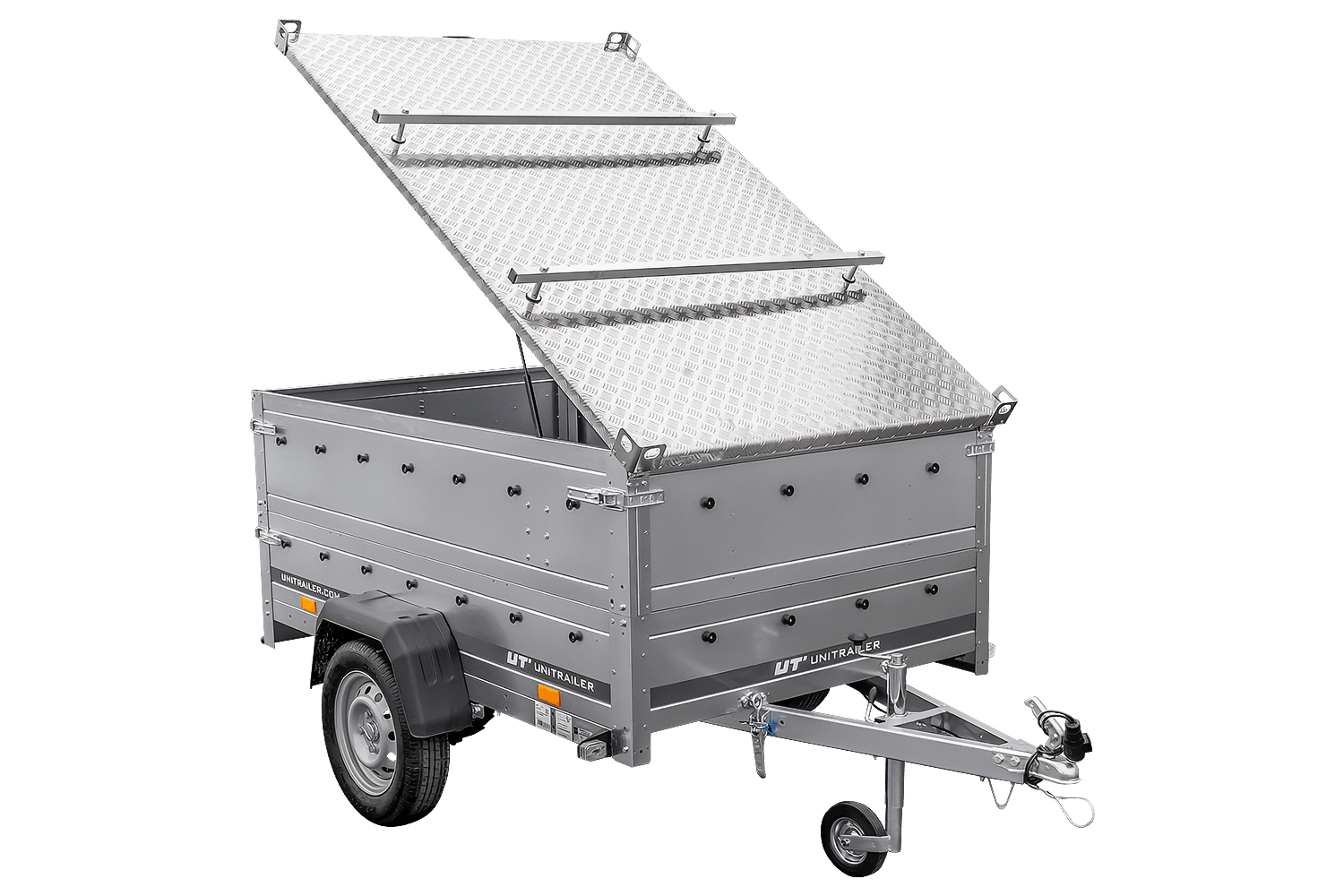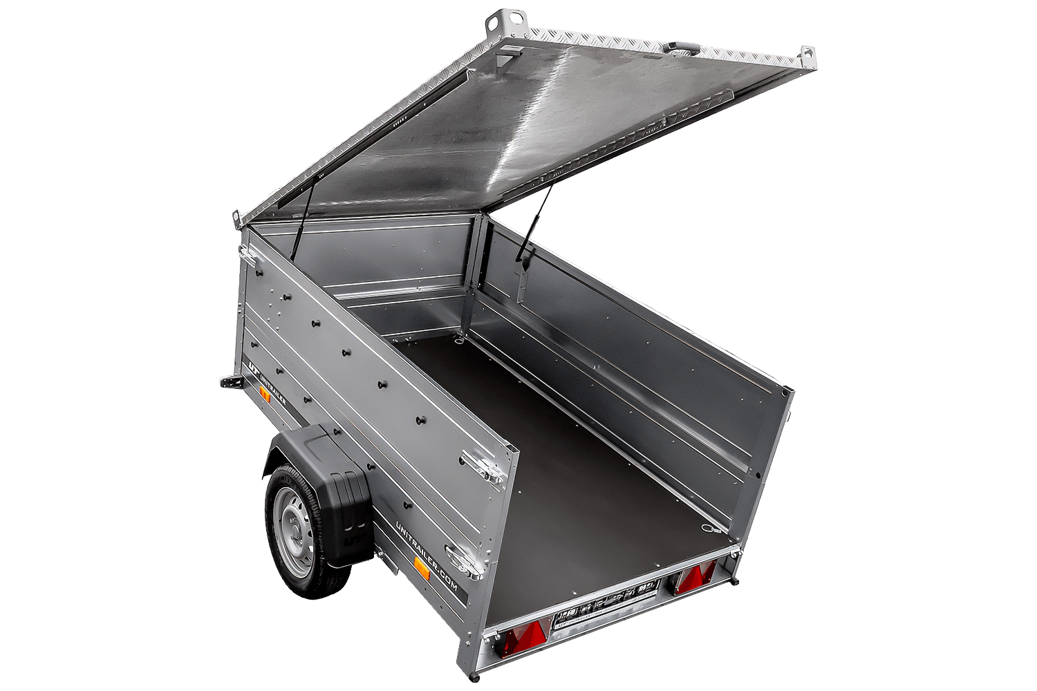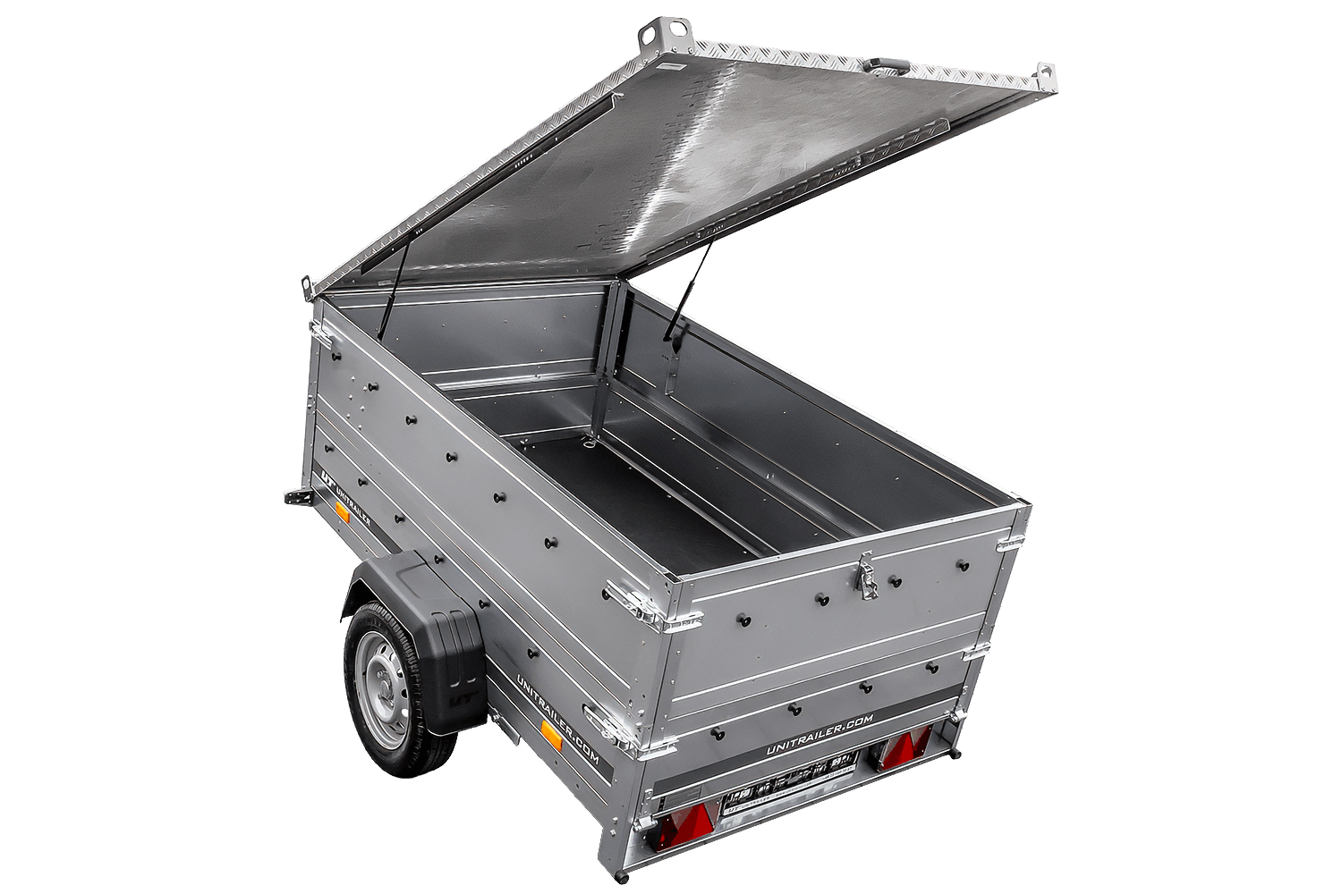 Remorque à un essieu sur ressorts 230x125 UNITRAILER GARDEN 230/R KIPP avec ridelles supplémentaires et capot en aluminium