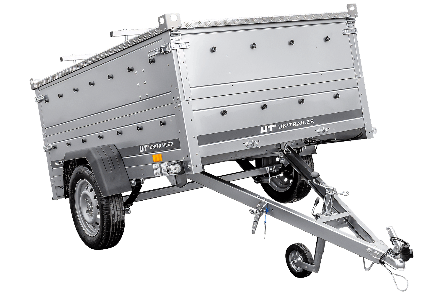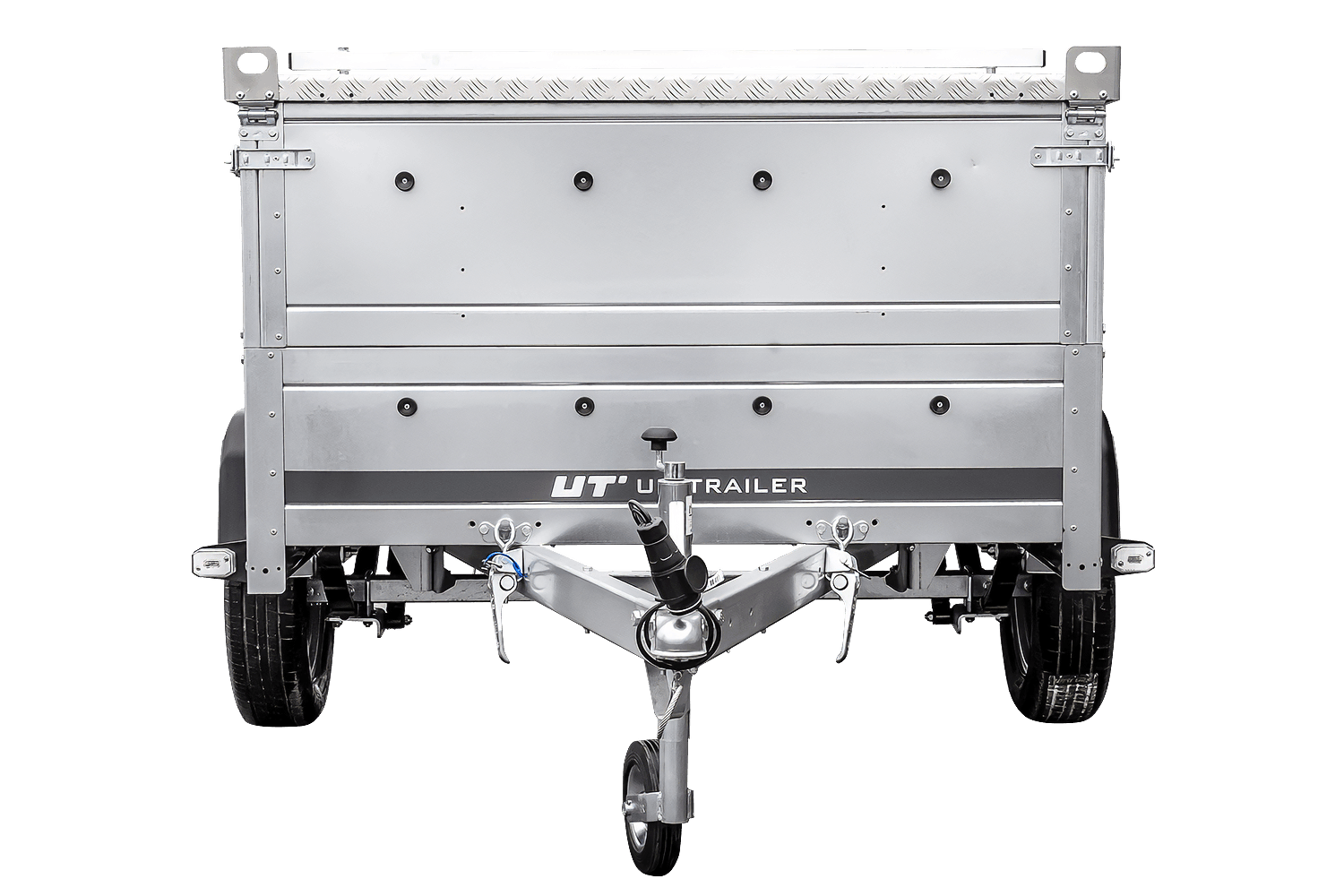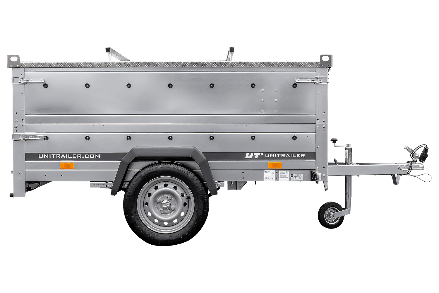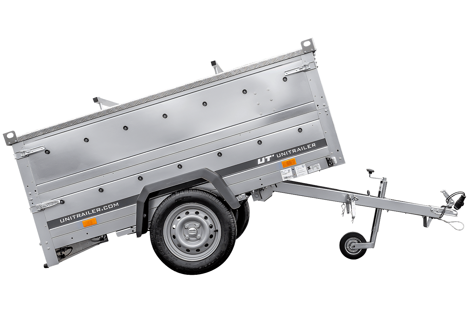 Remorque à un essieu sur ressorts 230x125 UNITRAILER GARDEN 230/R KIPP avec ridelles supplémentaires et capot en aluminium