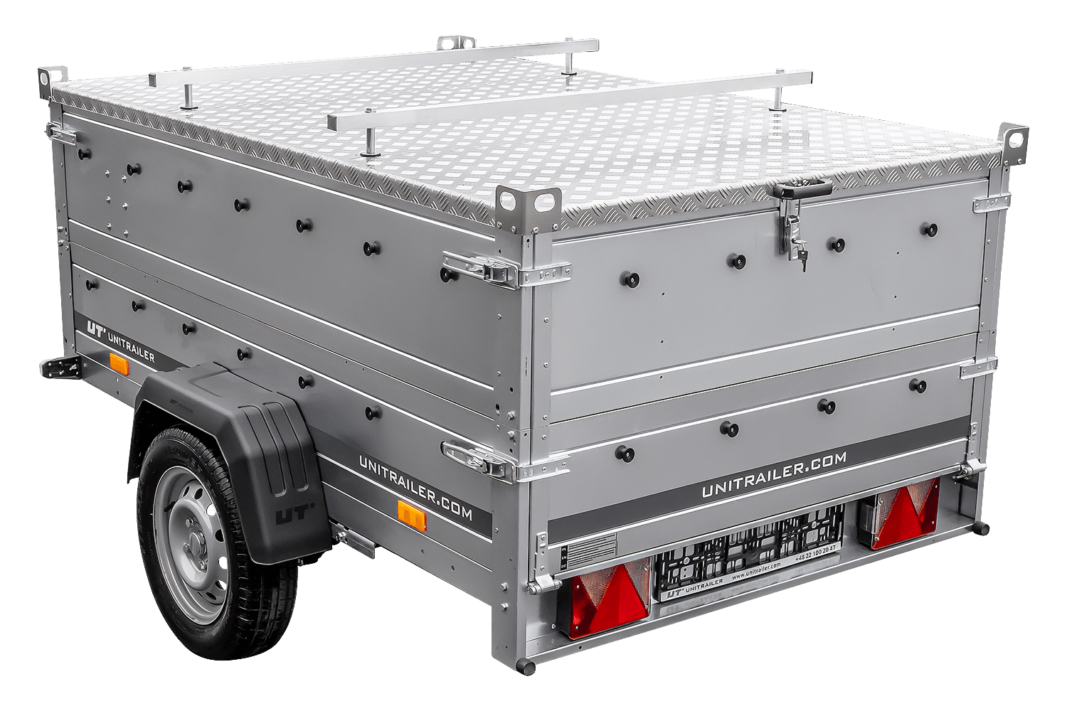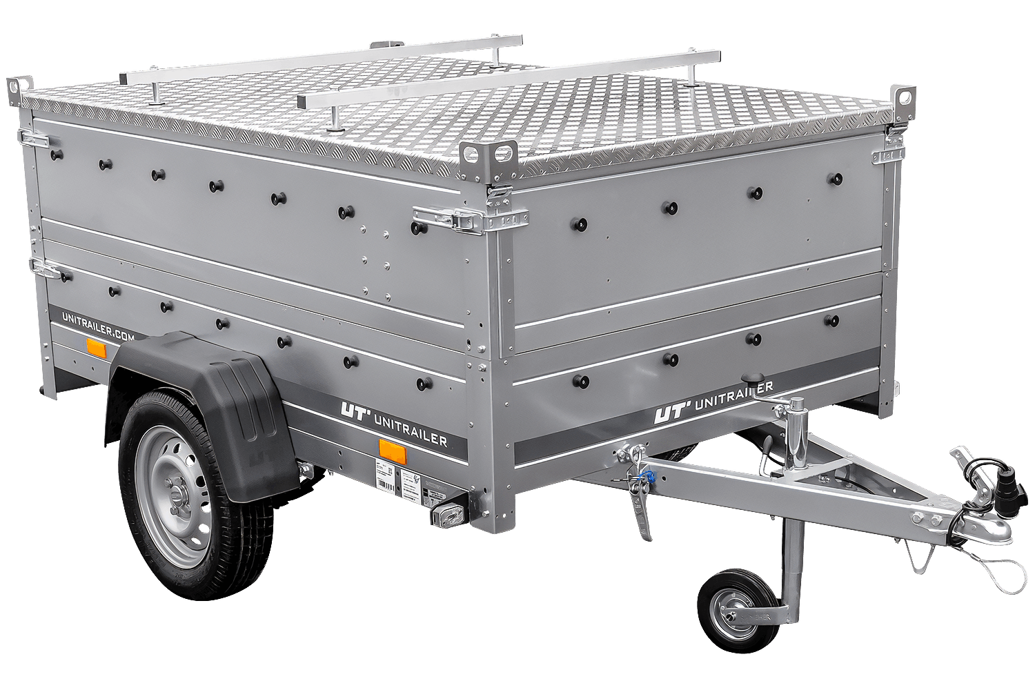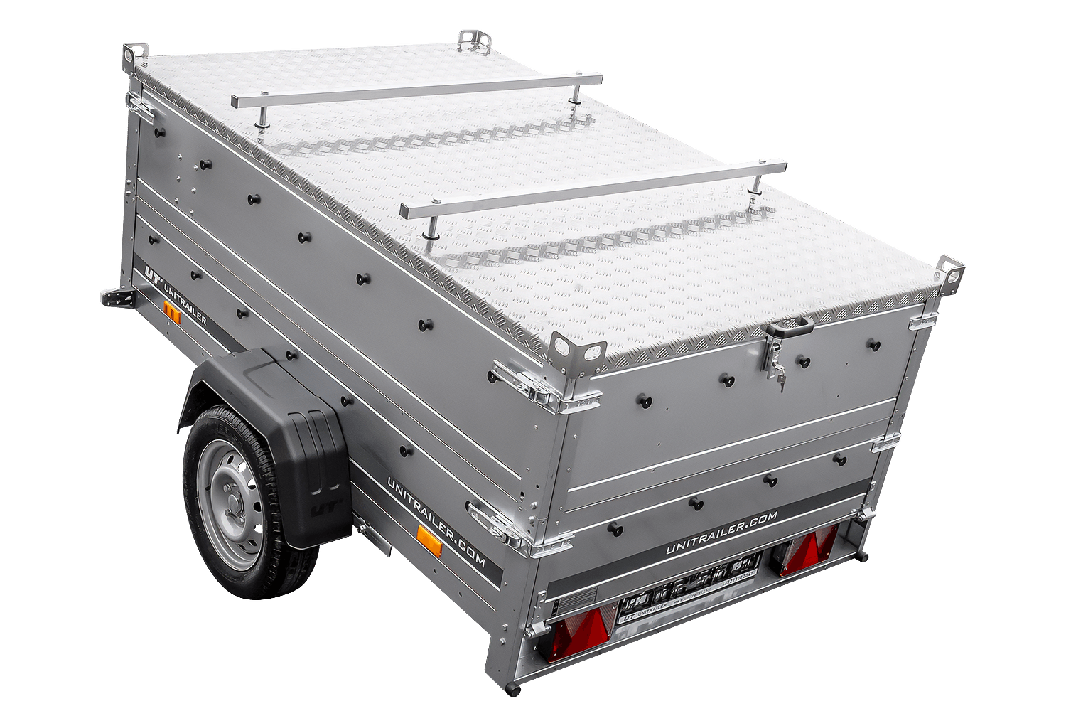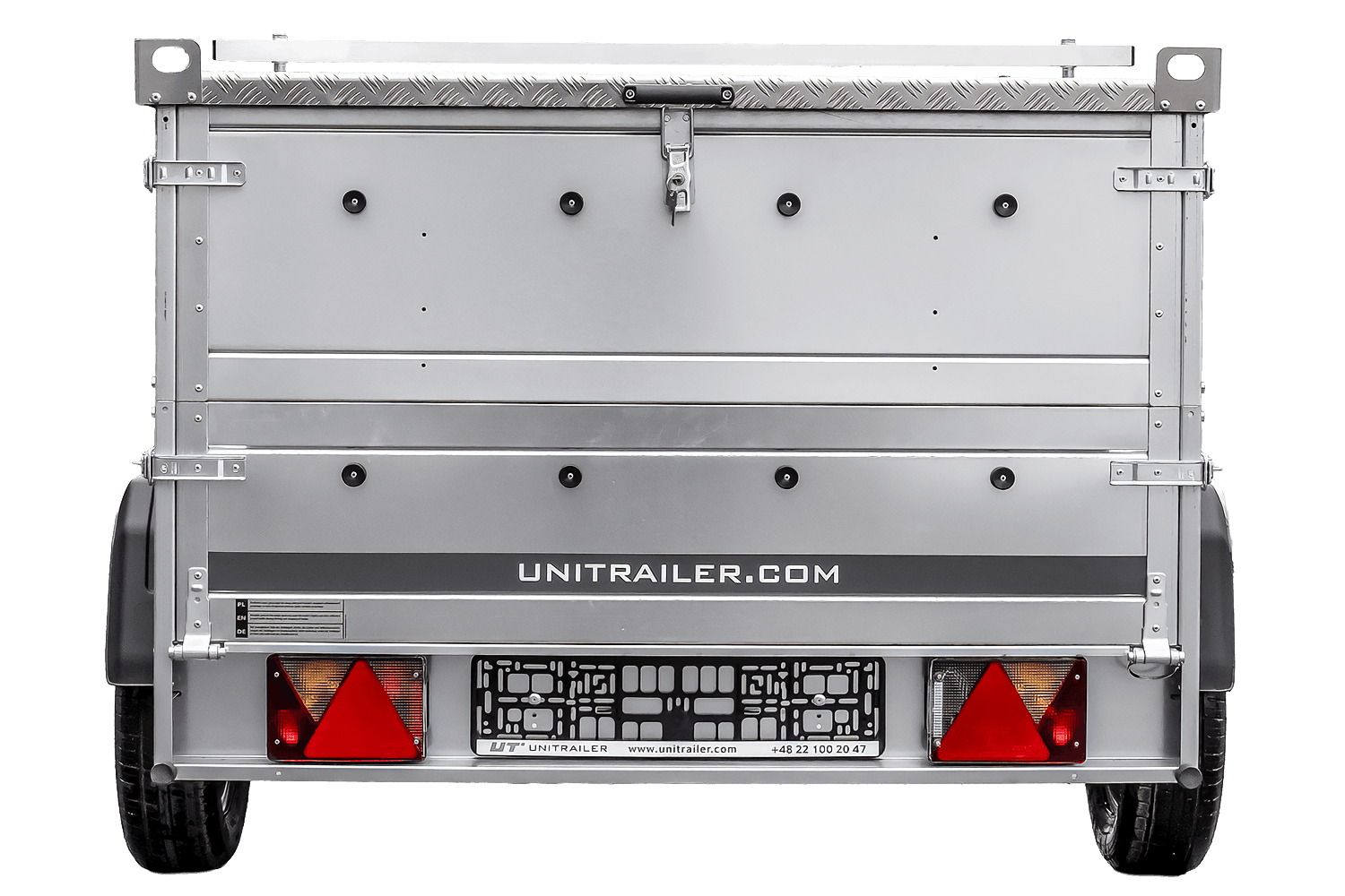 Remorque à un essieu sur ressorts 230x125 UNITRAILER GARDEN 230/R KIPP avec ridelles supplémentaires et capot en aluminium