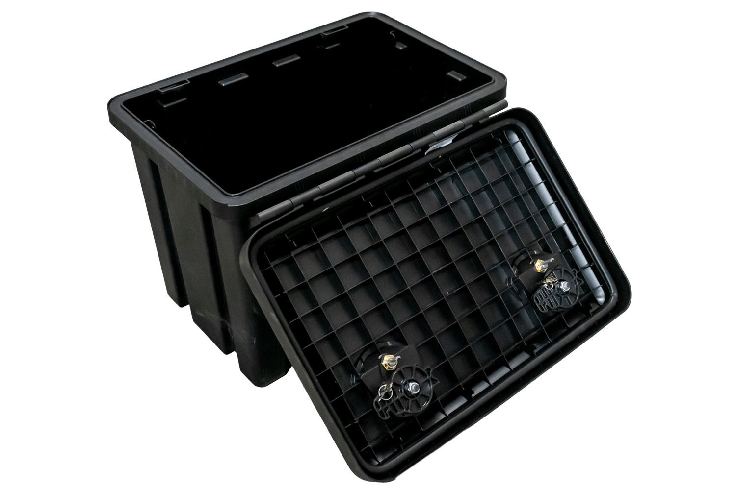 Fabriquée en polypropylène et nylon de haute qualité, la boîte est renforcée par des nervures pour une durabilité accrue et une meilleure résistance aux chocs. Ce matériau offre une protection exceptionnelle contre le feu, l'eau, la poussière, les carburants, les UV et les températures extrêmes , ce qui la rend idéale pour une utilisation intensive en conditions difficiles. Le couvercle est muni d'un joint en caoutchouc assurant une étanchéité parfaite et empêchant toute infiltration d'eau et de poussière . Cette conception protège efficacement les outils et équipements rangés des agressions extérieures, un atout particulièrement important sur les chantiers ou en cas d'intempéries.