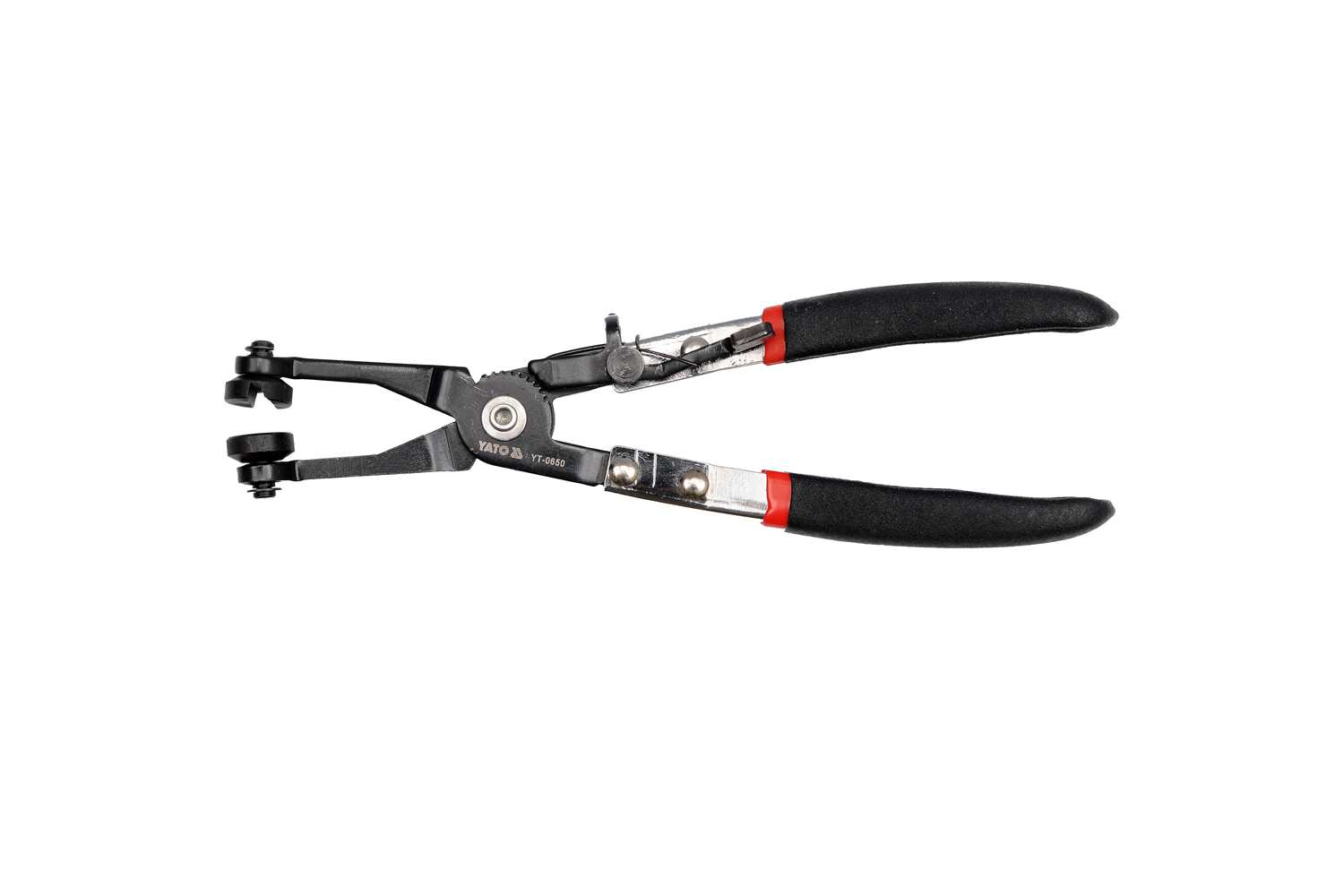 - Pince droite pour colliers de serrage YT-0650 simplifie les interventions sur les durites des systèmes de refroidissement, d'alimentation et de climatisation. Mécanisme de verrouillage, de mâchoires en acier 40 HRC et d'une poignée ergonomique.