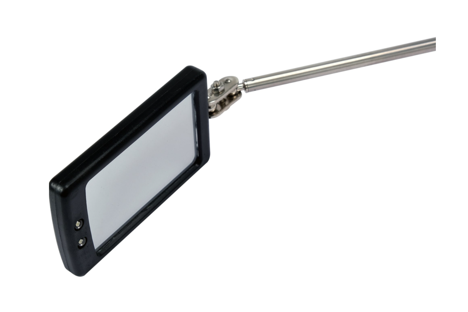 - Kit d'inspection YT-06622 avec des miroirs, pinces magnétiques, lampe torche LED montée sur bras télescopiques. Facilite le travail dans les zones difficiles d'accès, mal éclairées. Pour les mécaniciens et bricoleurs.