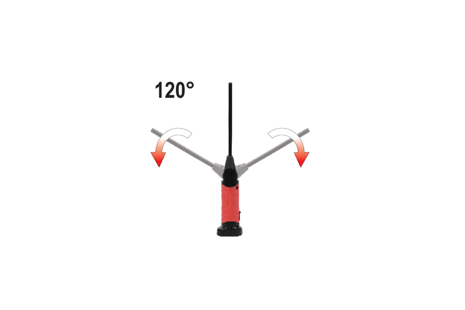 Un aimant intégré à la base et un crochet permettent de fixer facilement la lampe où vous le souhaitez, vous laissant les mains libres. Son corps rotatif à 120°, sa poignée antidérapante et son boîtier robuste en ABS et aluminium garantissent confort et durabilité. La batterie Li-Ion de 2600 mAh offre jusqu'à 7 heures d'autonomie et l'indicateur de niveau de charge permet de contrôler facilement l'autonomie restante. Le chargement s'effectue via un chargeur mural ou un câble USB.
