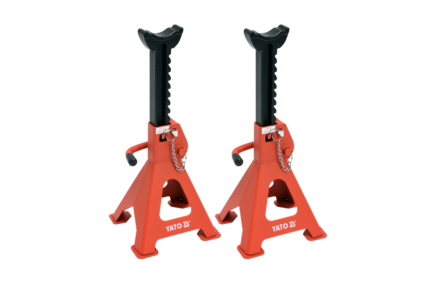 - Chandelles YT-17311 support véhicule grâce à leur base, tête robustes. Capacité de charge 3 T, hauteur réglable 276 à 420 mm. Utilisation en toute sécurité sur la la plupart des véhicules. Changements de roues, réparations du châssis en atelier, garage.