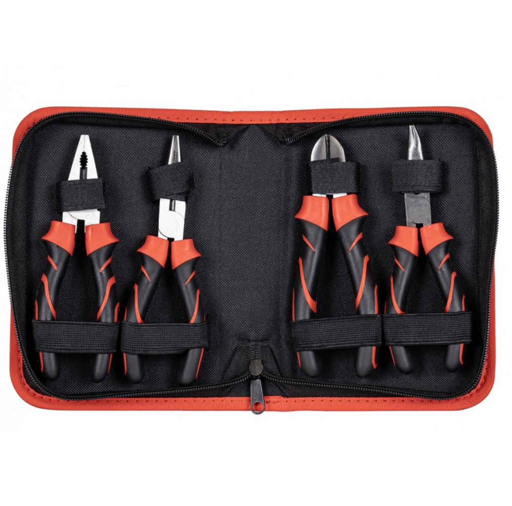 Le jeu de pinces AKC8144 de KAMAR est un ensemble pratique de quatre outils de 160 mm de long , fabriqués en acier durable et dotés de poignées ergonomiques en caoutchouc. Ce jeu permet de serrer, plier, casser et maintenir fermement divers composants, ce qui le rend idéal pour l'atelier, la maison et les travaux de réparation.