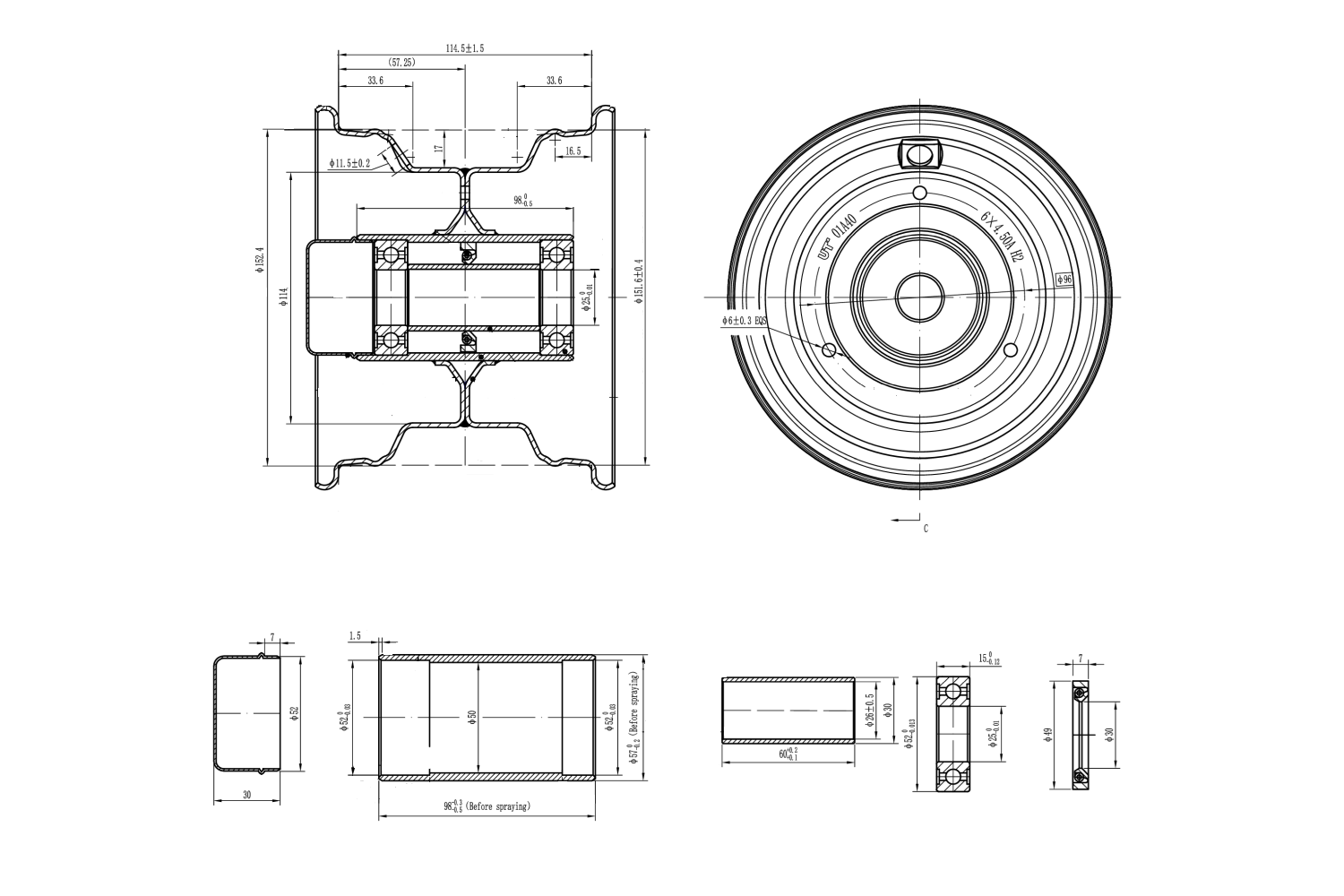 - Cette jante H2 de 4,5 × 6 pouces, équipée de roulements 6205-2RS, est conçue pour les engins utilitaires et de chantier. Elle est idéale pour le transport, l'entreposage, les plateformes et les chariots utilitaires, ainsi que pour les tondeuses à gazon, l
