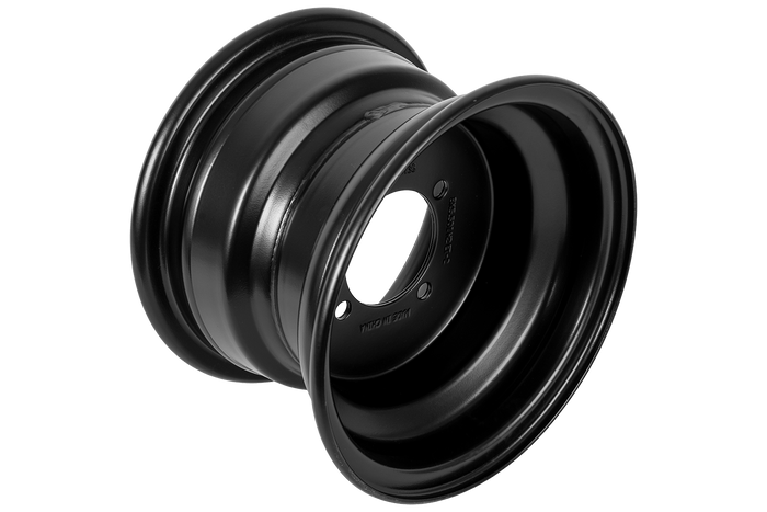 La jante est en acier , ce qui lui confère une grande robustesse mécanique et une excellente résistance aux charges. Son revêtement en peinture noire la protège de la corrosion et des intempéries. Elle est ainsi parfaitement adaptée aux applications utilitaires où la roue évolue sur des terrains variés.