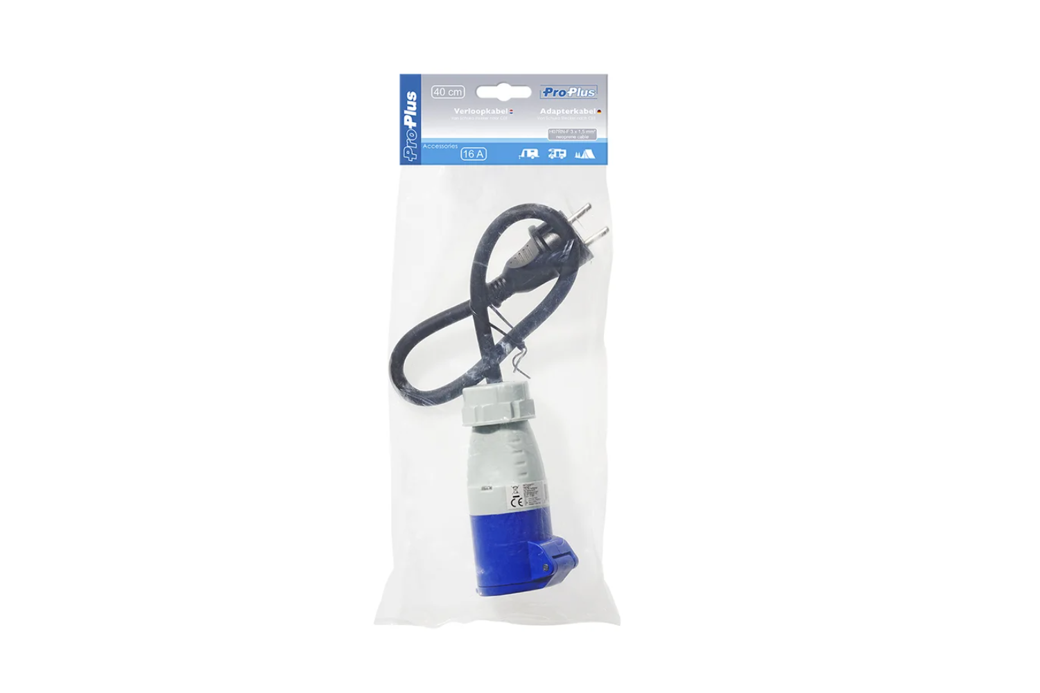 - Adaptateur de prise ProPlus CEE/SCHUKO 16A 230V est un câble de haute qualité 40 cm destiné aux camping-cars et aux caravanes. Fabriqué en néoprène résistant, il est imperméable et conçu pour une utilisation en toute sécurité sur les terrains de camping.