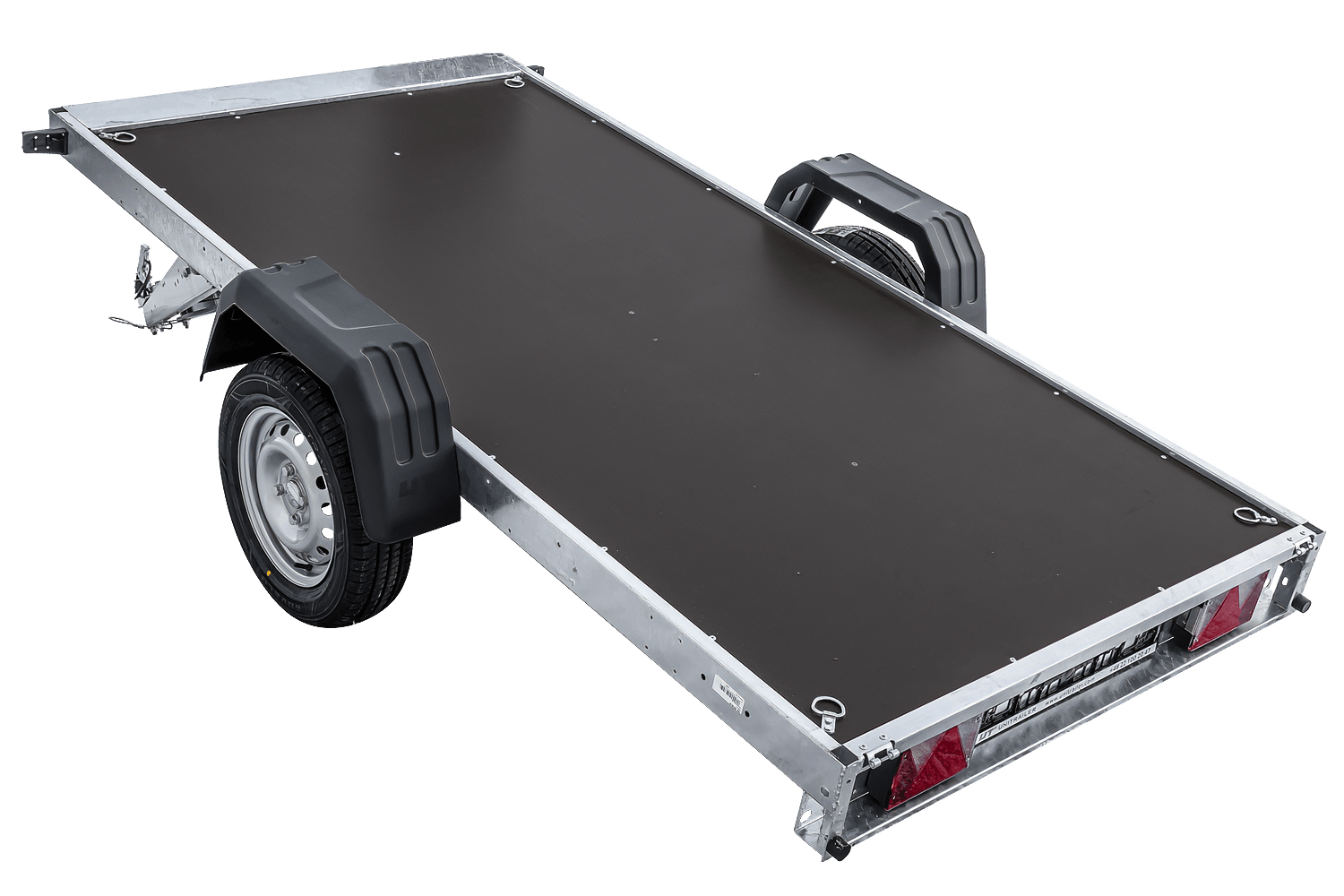 Les ridelles de 40 cm de haut optimisent la surface de chargement accrue de la remorque, permettant ainsi le transport sécurisé de matériaux plus volumineux. Les ridelles avant, arrière et latérales sont entièrement amovibles, transformant rapidement la remorque en plateforme de transport. Cette solution est idéale pour le transport d'éléments très longs tels que poutres, planches, tuyaux ou structures métalliques. Une seule remorque peut servir à de multiples usages, évitant ainsi d'investir dans du matériel supplémentaire. Pour une sécurité de chargement optimale, la remorque est équipée de quatre points d'arrimage au plancher. Ces derniers fixent solidement le chargement à l'aide de sangles de transport, l'empêchant de se déplacer pendant le transport. Ceci est particulièrement important pour le transport d'objets lourds ou de forme irrégulière.