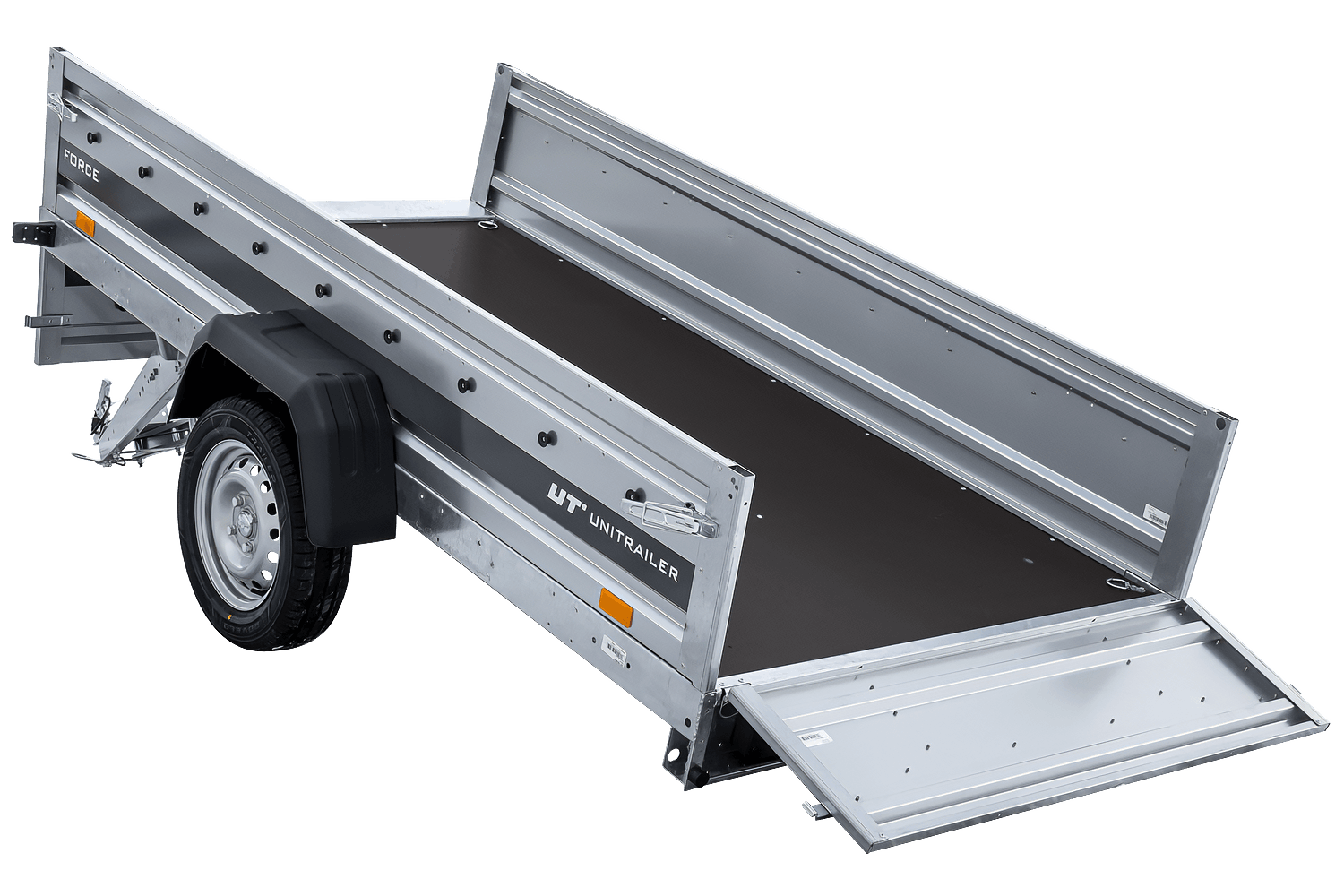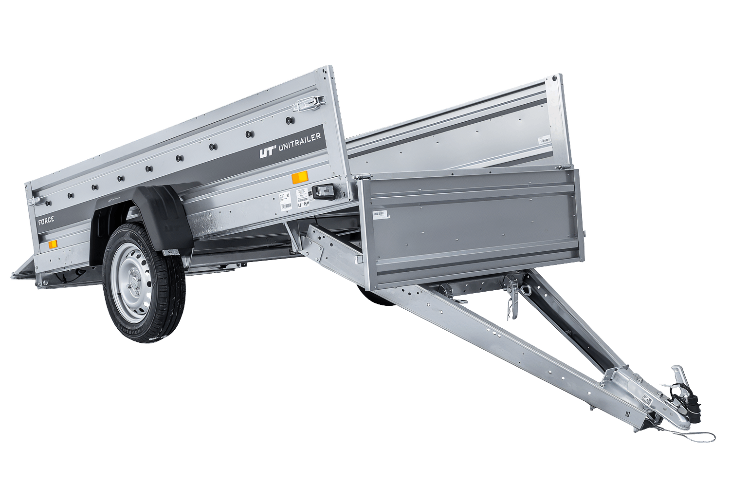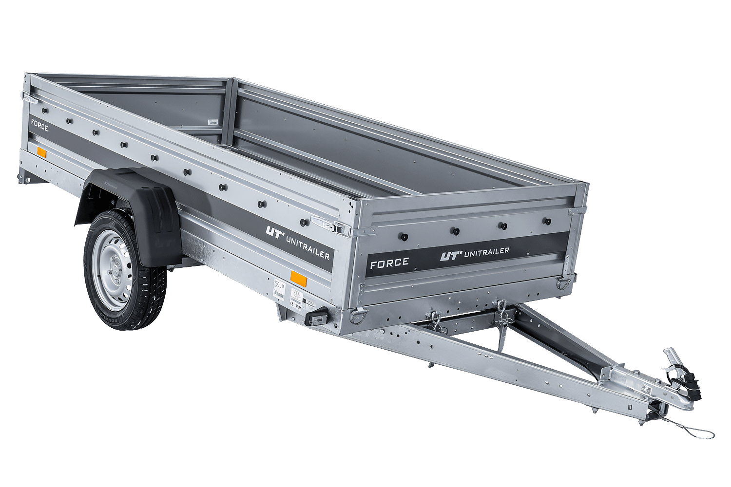 Les quatre côtés sont amovibles, offrant ainsi une grande flexibilité d'utilisation. L'Unitrailer Force est un dispositif de transport polyvalent.