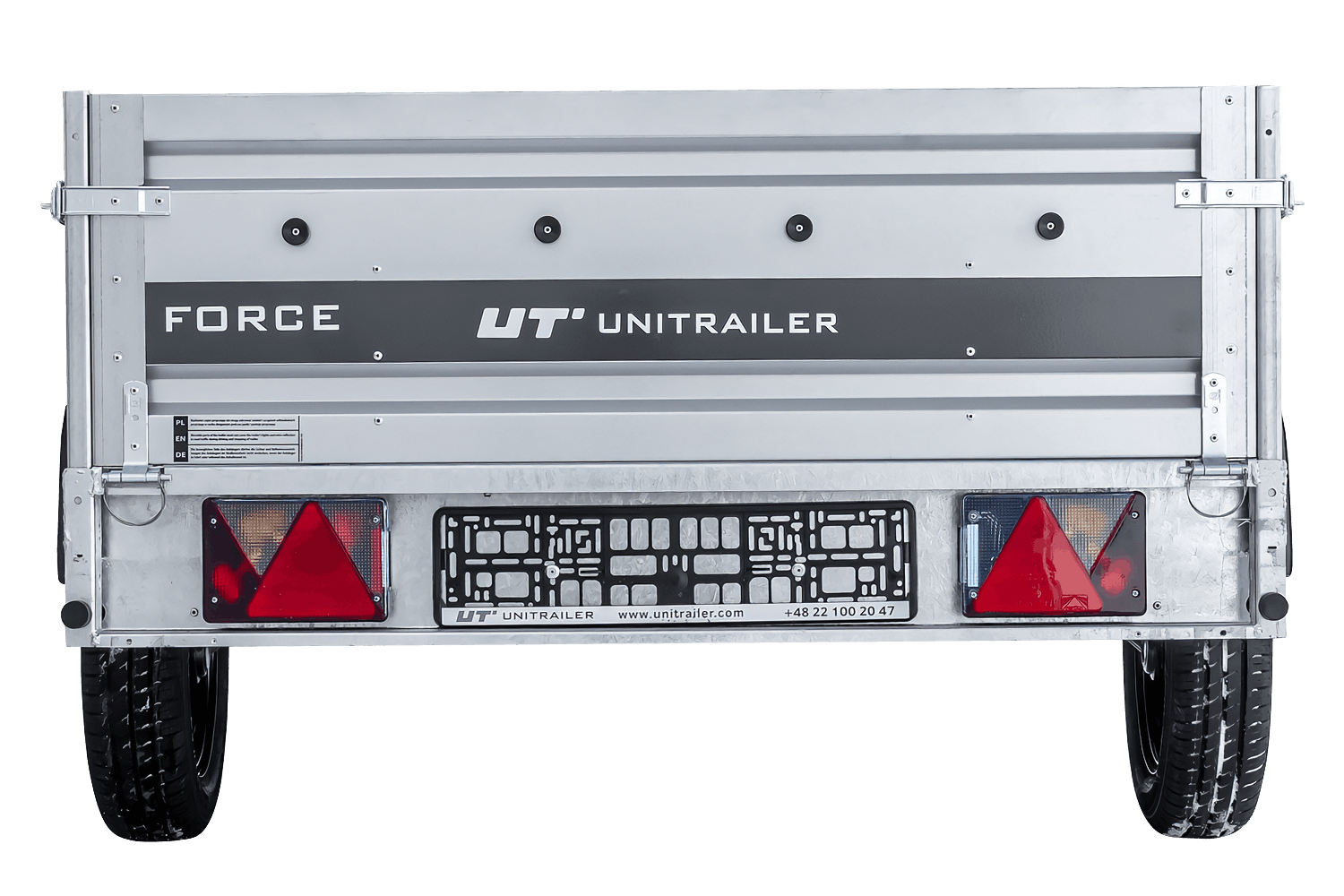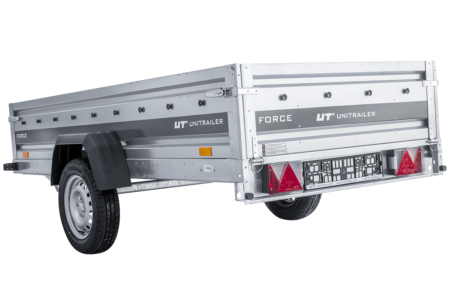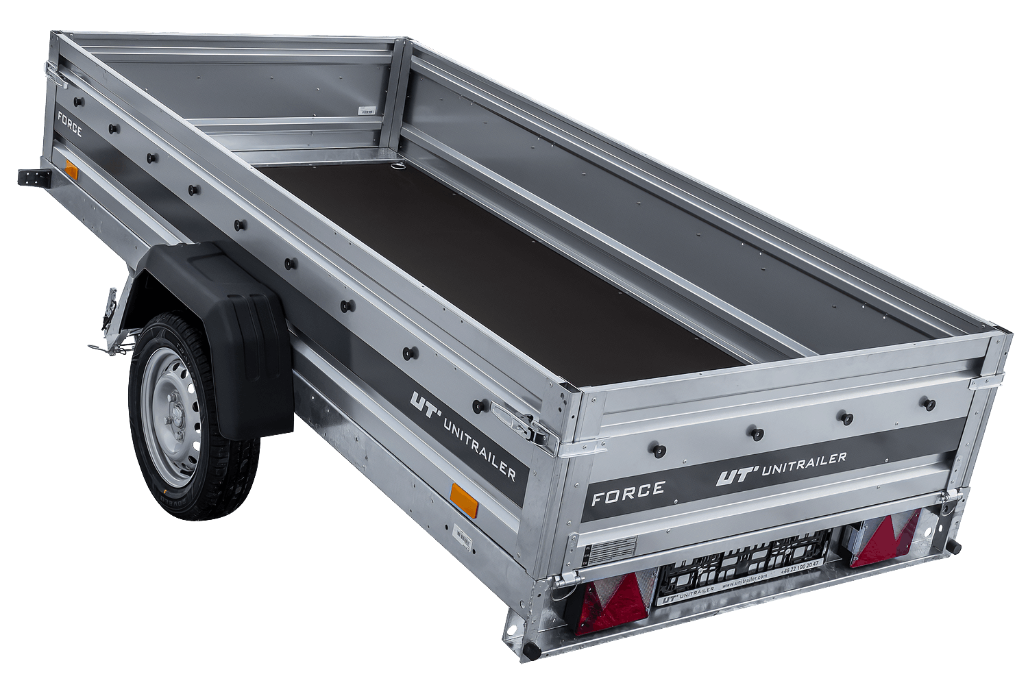 Les quatre côtés sont amovibles, offrant ainsi une grande flexibilité d'utilisation. L'Unitrailer Force est un dispositif de transport polyvalent.