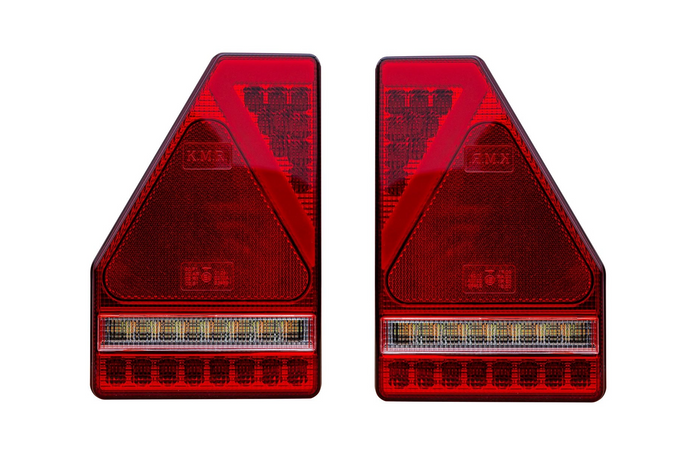 - Feux arrière à LED L1907+L1908 pour montage gauche et droit. Ils offrent six fonctions : feu de position, feu stop, feu de recul, feu antibrouillard, clignotant et réflecteur. Adaptés aux remorques, camions et engins agricoles.