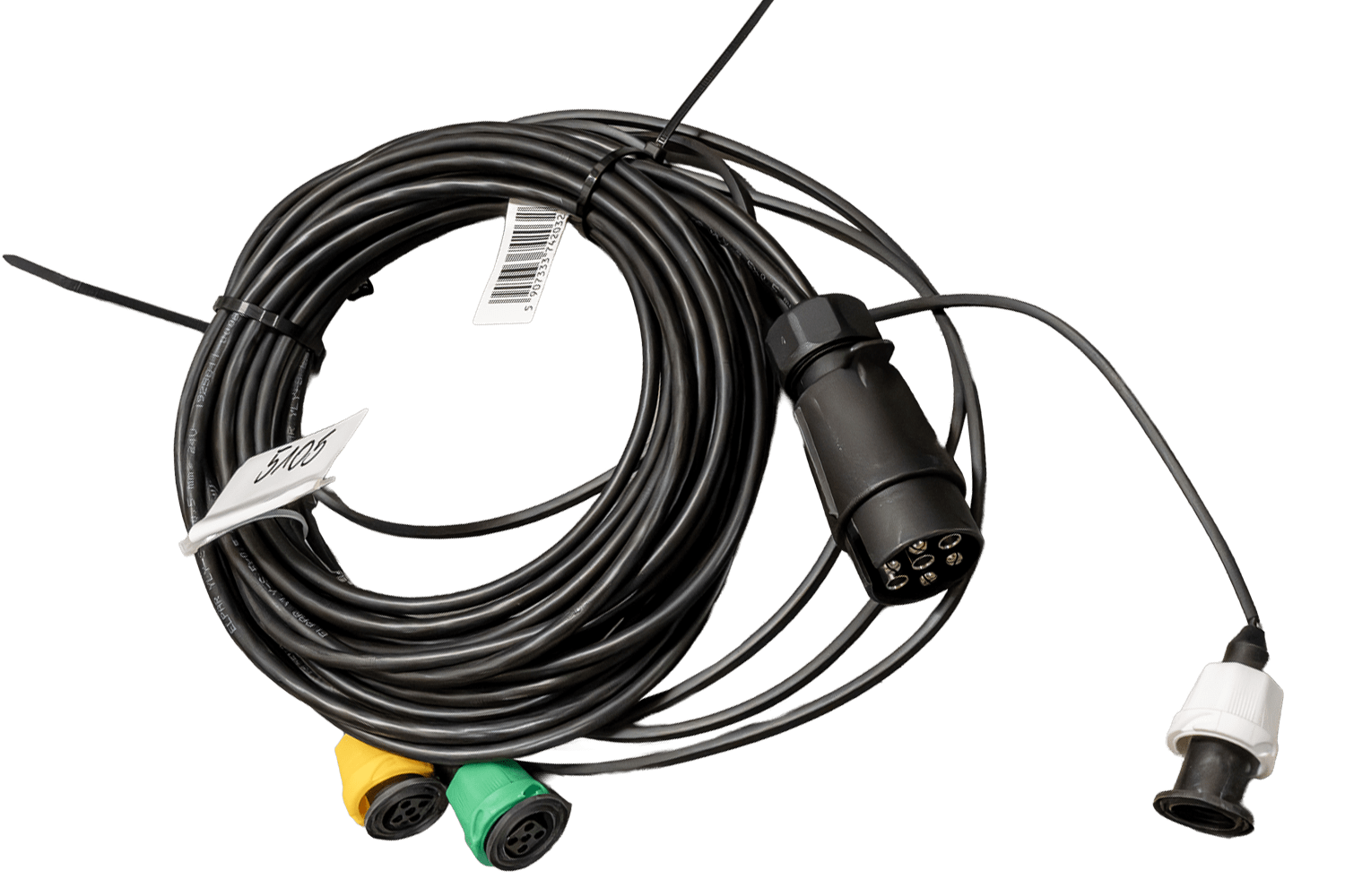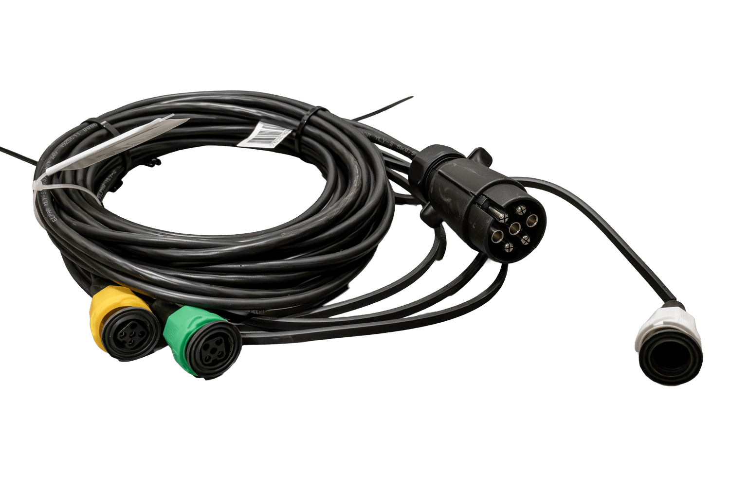 Faisceau électrique pour remorque MANTES, 4,7 m, connecteur à baïonnette 7 broches, 2 connecteurs AJ.BA 5 broches et 2 connecteurs AJ.BA 2 broches.