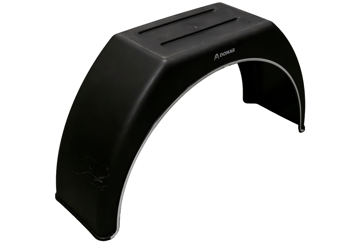 - Le garde-boue simple DK3110 DOMAR, pour roues de 14 à 17 pouces, mesure 870 mm de long et 260 mm de large. Il protège la remorque et son chargement des dommages mécaniques et les autres usagers de la route des projections de boue et de pierres.