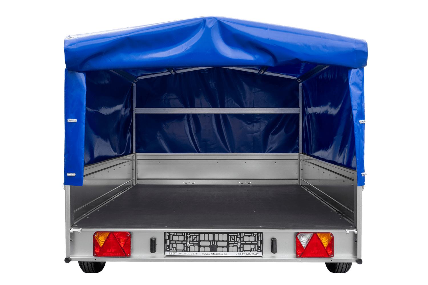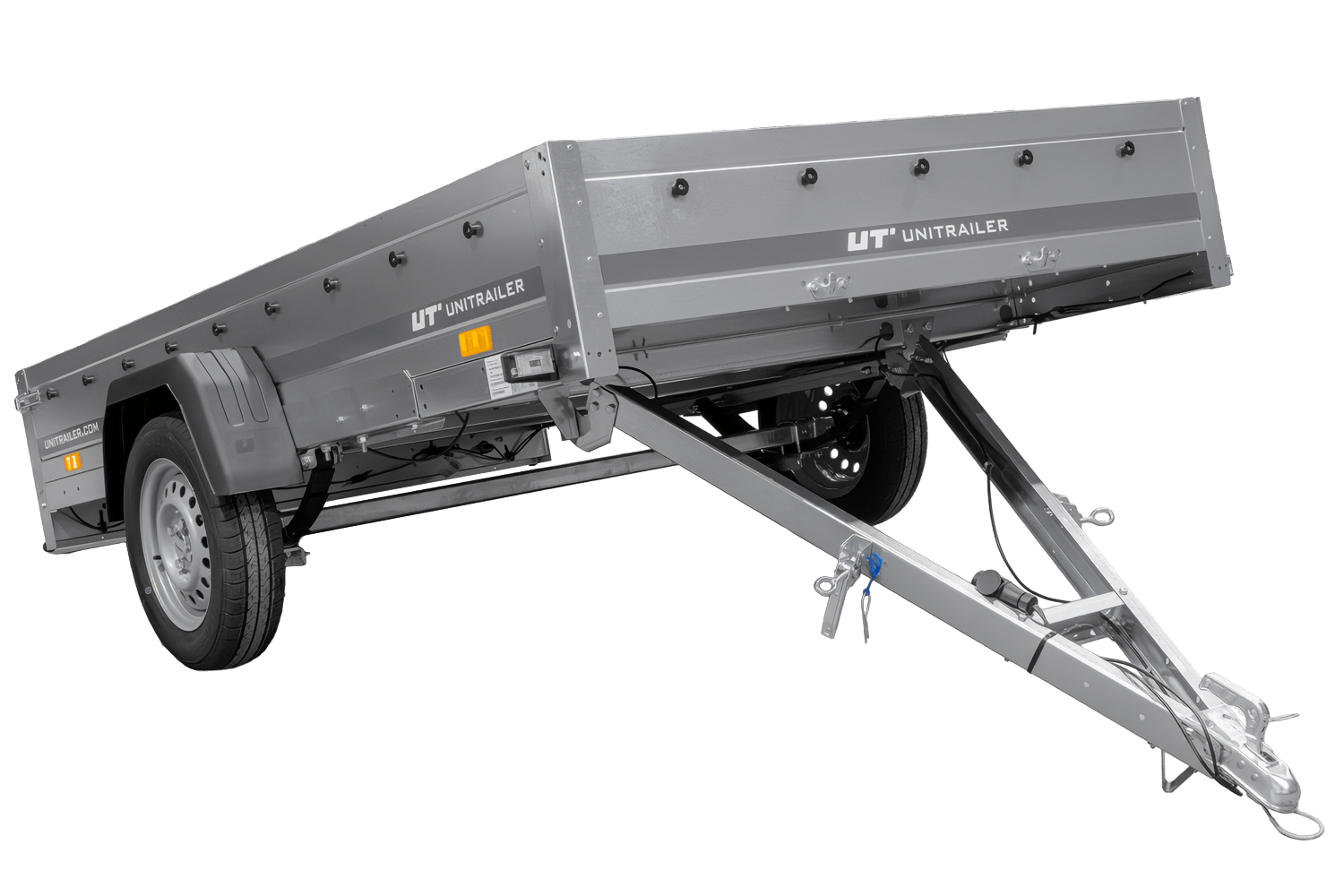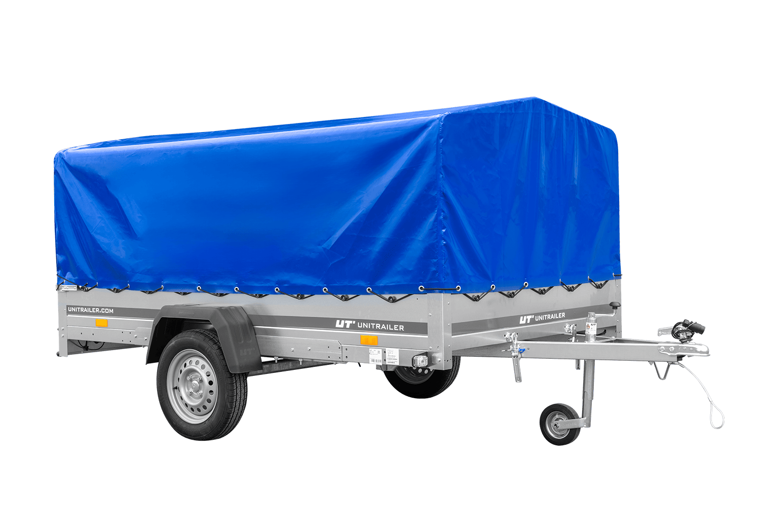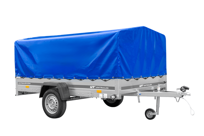 - La remorque UNITRAILER GARDEN 265/R KIPP (264 x 150 cm) est une remorque à suspension à ressorts avec amortisseurs, équipée d'un châssis H-800 et d'une bâche bleue. Elle offre une conduite stable, un volume de chargement généreux et une protection efficac