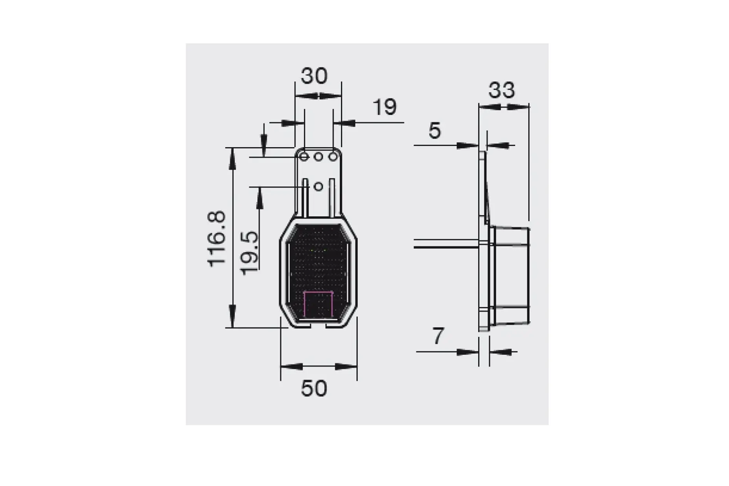 Le feu de gabarit LED FLEXIPOINT d'ASPÖCK, conçu pour un montage latéral droit , mesure 44 mm de large, 65 mm de haut et 28 mm de profondeur. Fonctionnant sur une tension de 12 à 24 V , il convient aux remorques, engins agricoles, camions et semi-remorques, ce qui souligne sa polyvalence. Équipé d' un support de fixation en caoutchouc et d'un câble plat de 0,5 m , il permet une installation rapide et facile. Grâce à la technologie LED , ce feu offre des performances élevées, une grande durabilité et une efficacité énergétique optimale, garantissant la sécurité dans toutes les conditions de route.