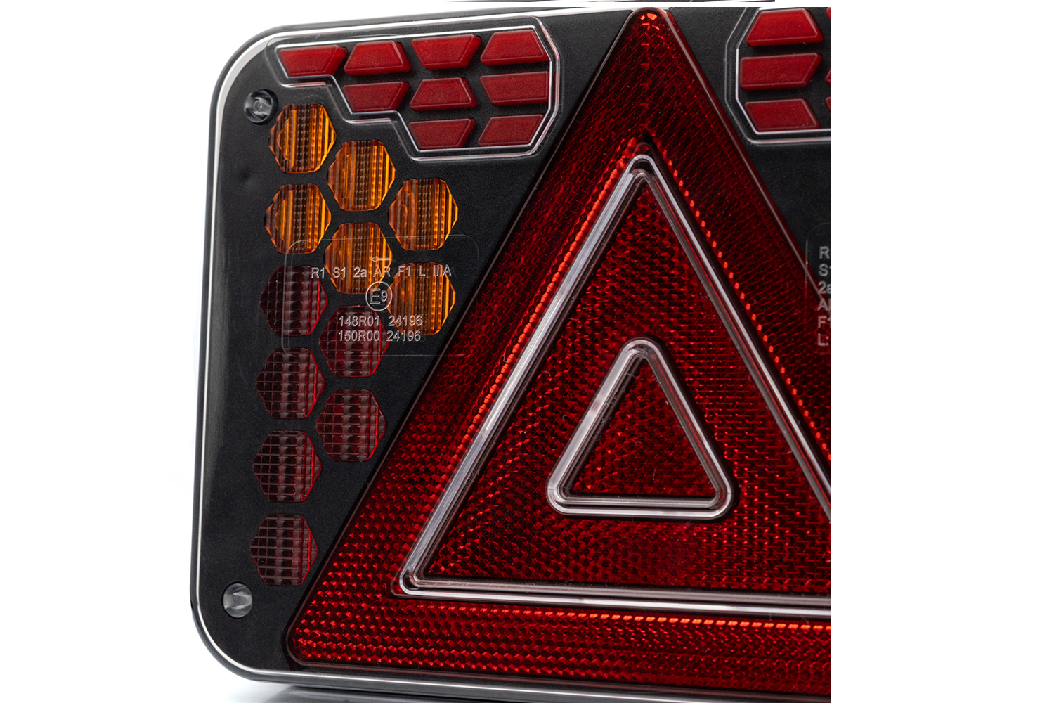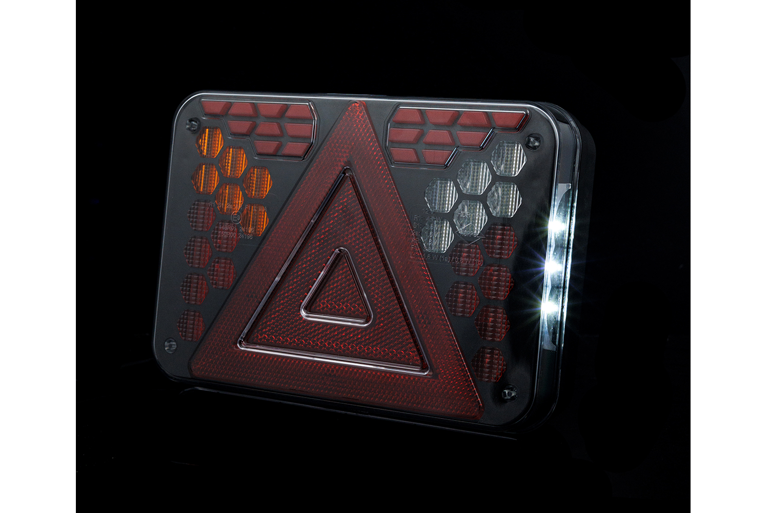 Ce feu arrière homologué E9 , conforme aux normes ECE R10, R148 et R150 , répond aux exigences européennes en matière de sécurité et de qualité de l'éclairage automobile. La norme ECE R10 garantit la compatibilité électromagnétique , empêchant toute interférence avec les dispositifs électroniques du véhicule. La norme ECE R148 certifie l'efficacité des feux de signalisation tels que les feux de position, d'arrêt, de direction et de recul, garantissant leur visibilité et leur conformité aux normes. La norme ECE R150 définit les exigences relatives aux réflecteurs , améliorant ainsi la visibilité des véhicules de nuit ou par faible luminosité. Ce feu est une solution polyvalente et fiable, idéale pour les véhicules utilitaires, les remorques et les engins de chantier .