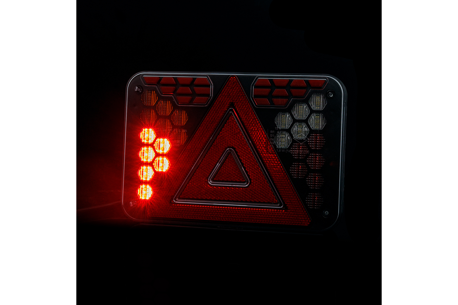 - Le feu arrière à LED LZD 3215 HORPOL est conçu pour être monté du côté gauche du véhicule. Il offre sept fonctions : feu de position, feu stop, feu de recul, feu antibrouillard, clignotant, éclairage de plaque d’immatriculation et réflecteur.