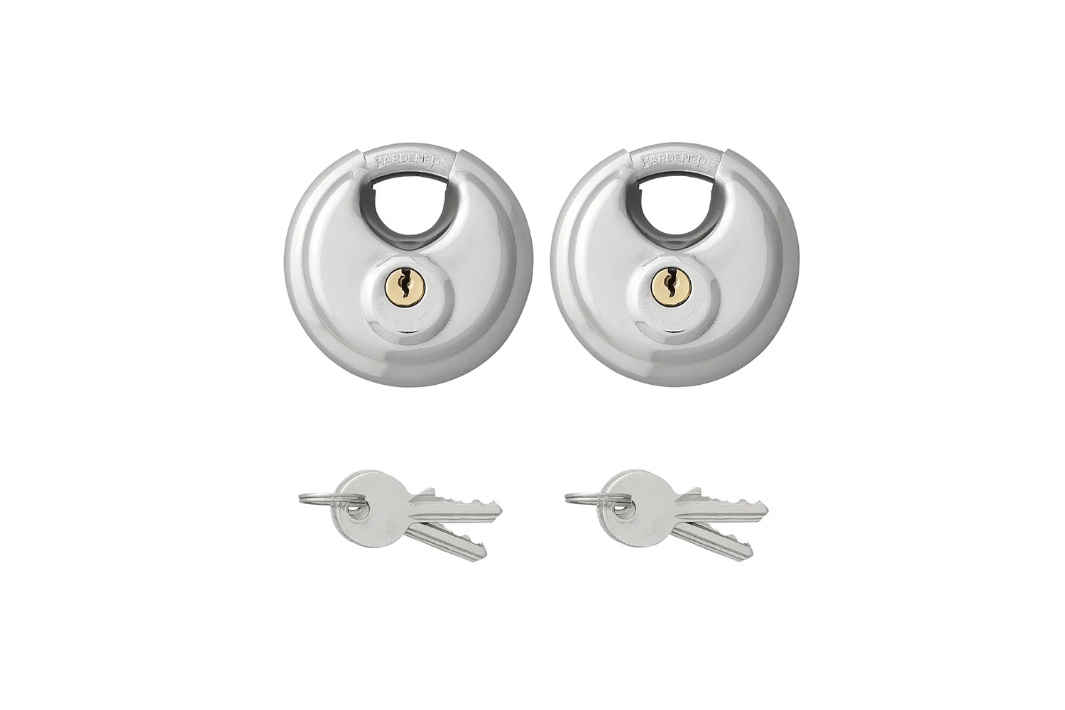 Ce kit comprend deux cadenas à disque et un jeu de clés . C'est une solution pratique et efficace pour sécuriser vos biens à la maison, dans votre entreprise, à la ferme, au camping ou pendant le transport.