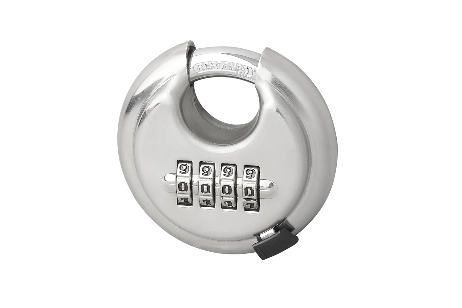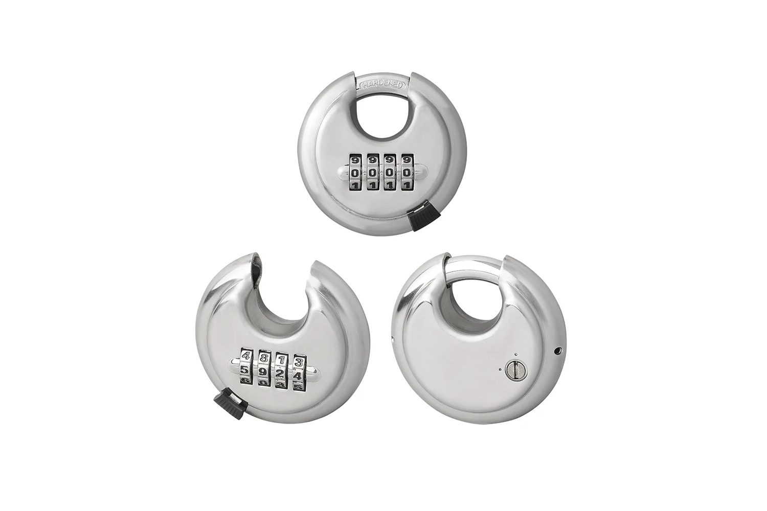 - Protection contre la manipulation : la forme en disque limite l’accès à l’anse au minimum, ce qui protège efficacement le cadenas contre l’utilisation d’outils de cambriolage tels que les coupe-boulons.