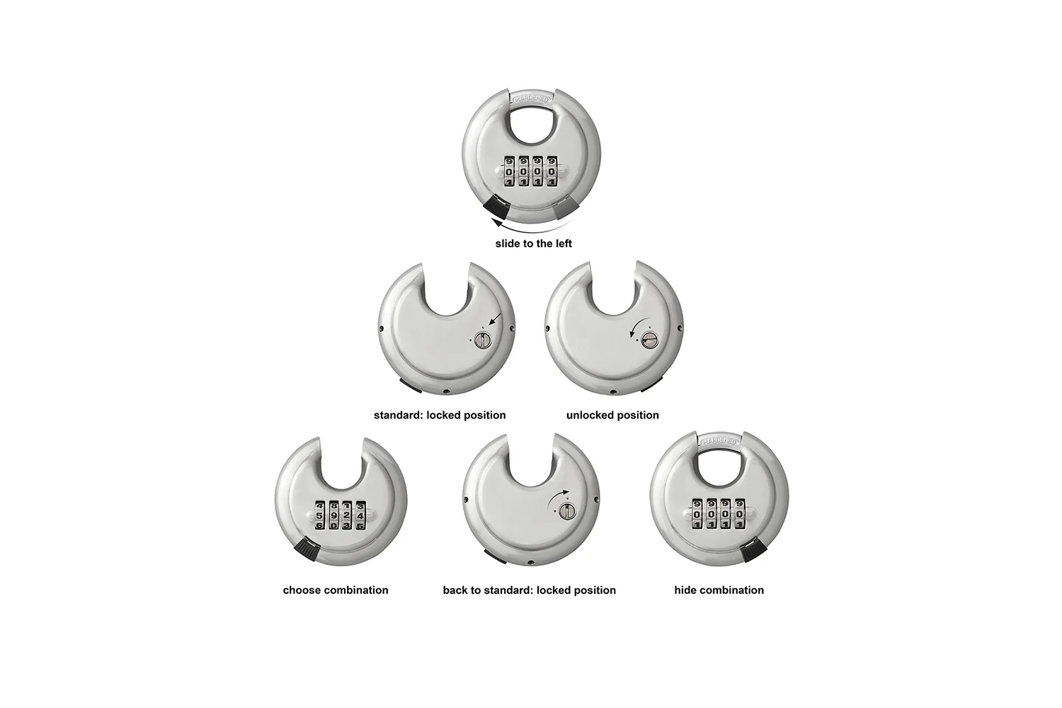 Ce cadenas est conçu pour sécuriser portails, garages, entrepôts, conteneurs, remorques, caravanes et autres biens nécessitant une protection renforcée. Il est particulièrement pratique lorsque plusieurs personnes partagent un même cadenas ou lorsqu'un accès rapide sans clés est essentiel. Sa forme de disque et sa construction en acier le rendent idéal pour un usage quotidien à la maison, au bureau, à la ferme, sur un chantier ou en voyage.