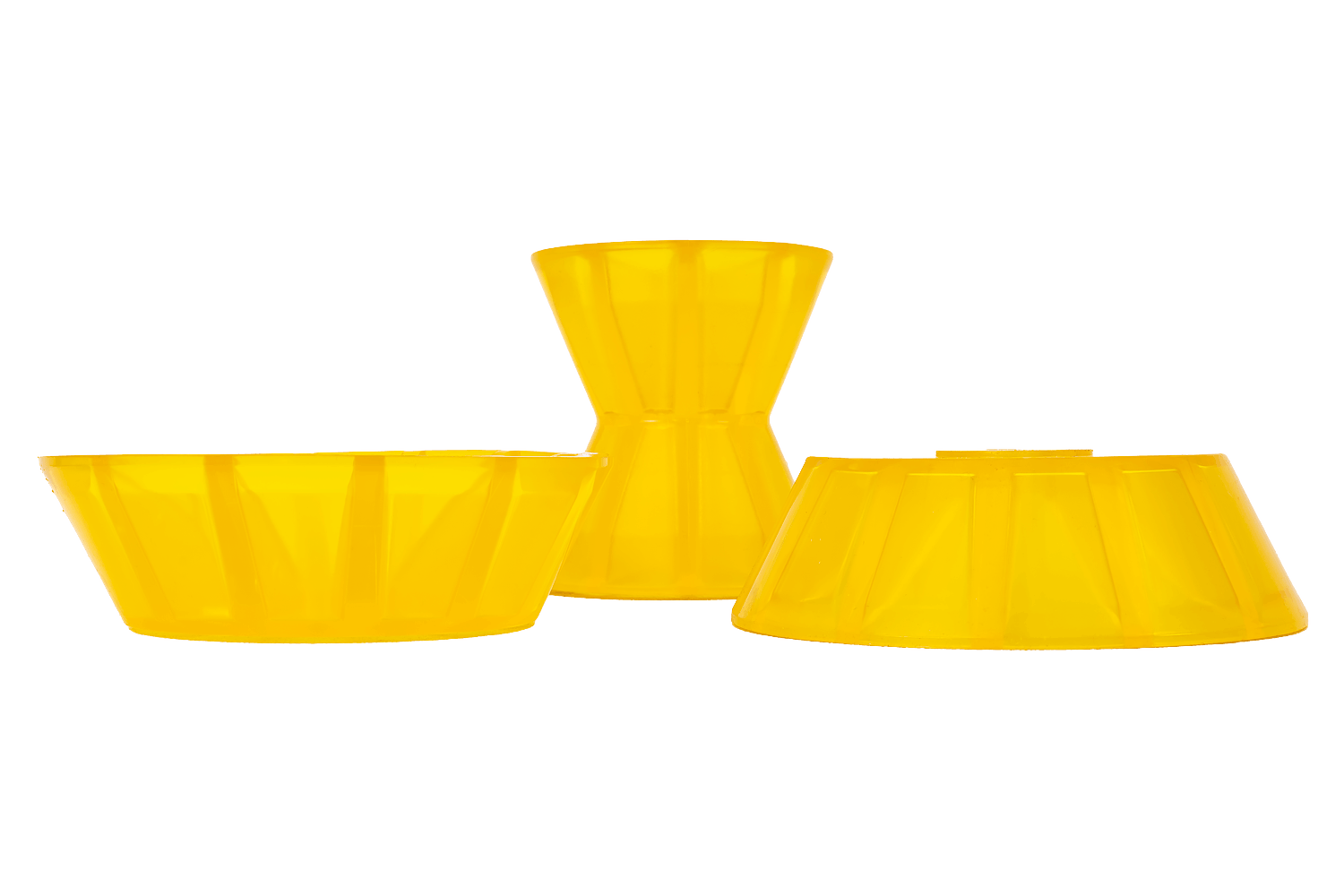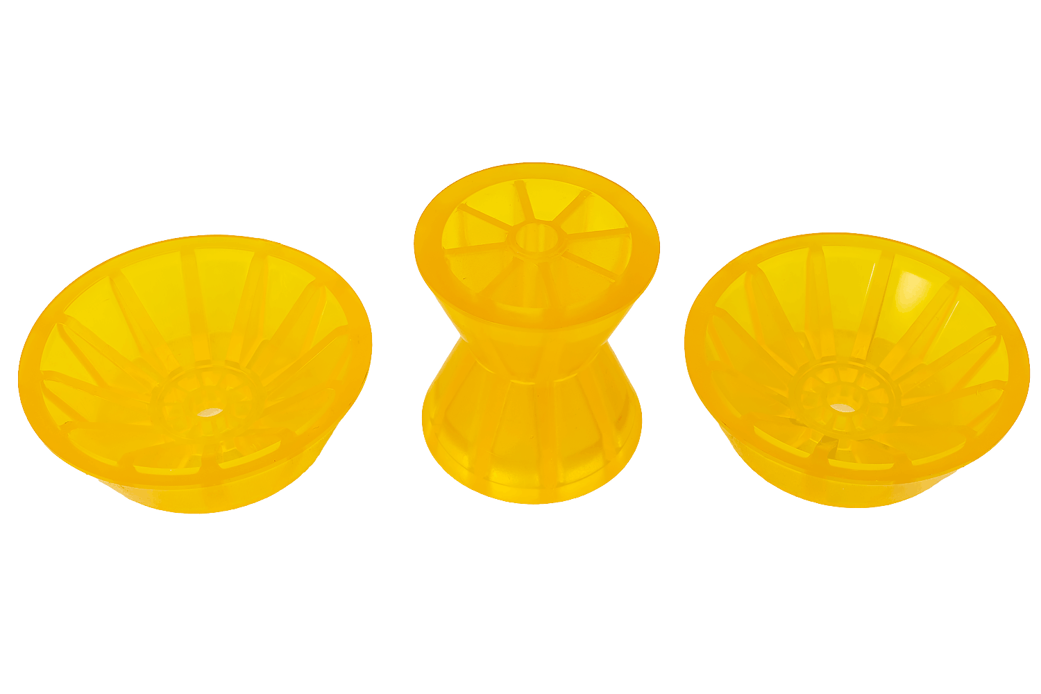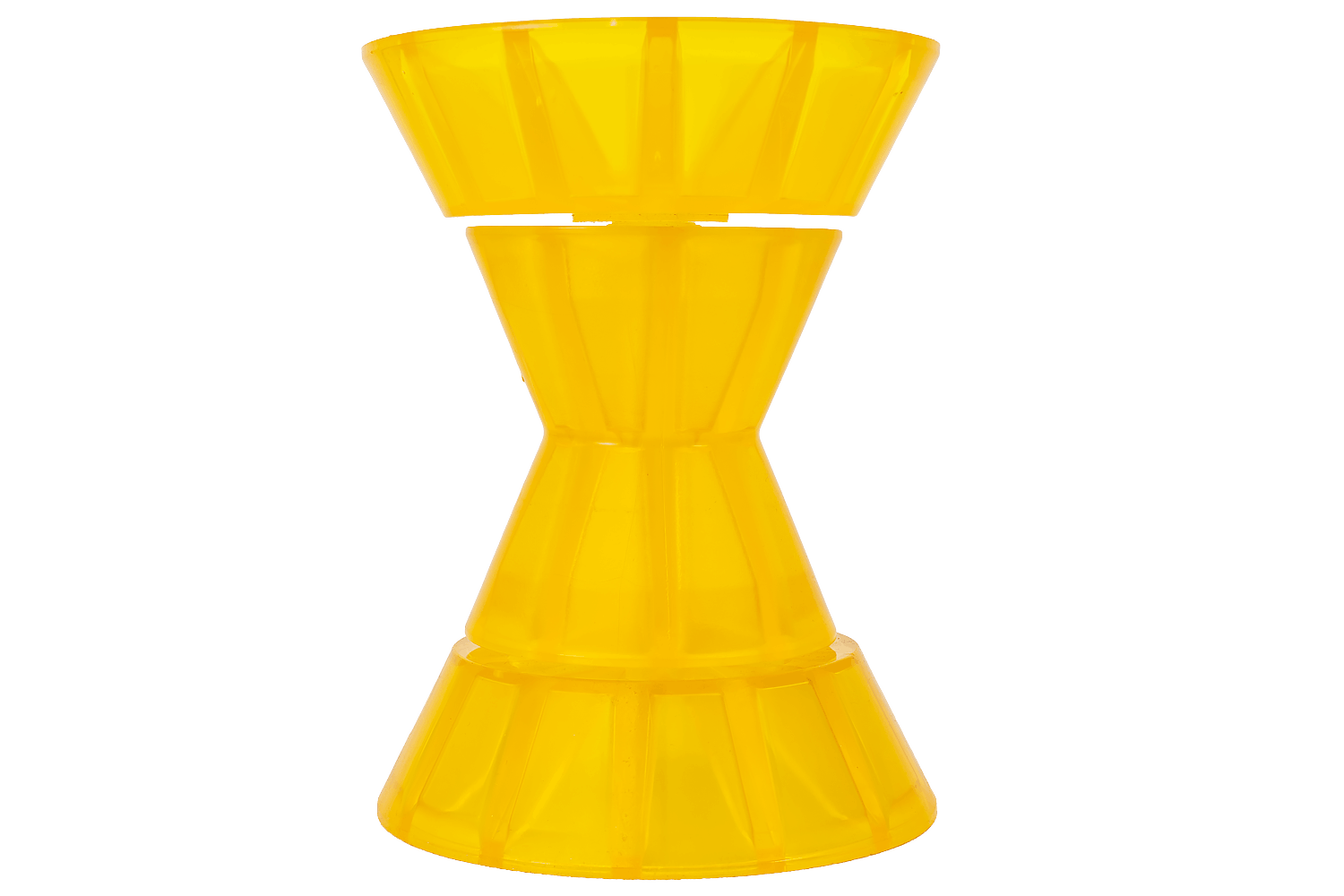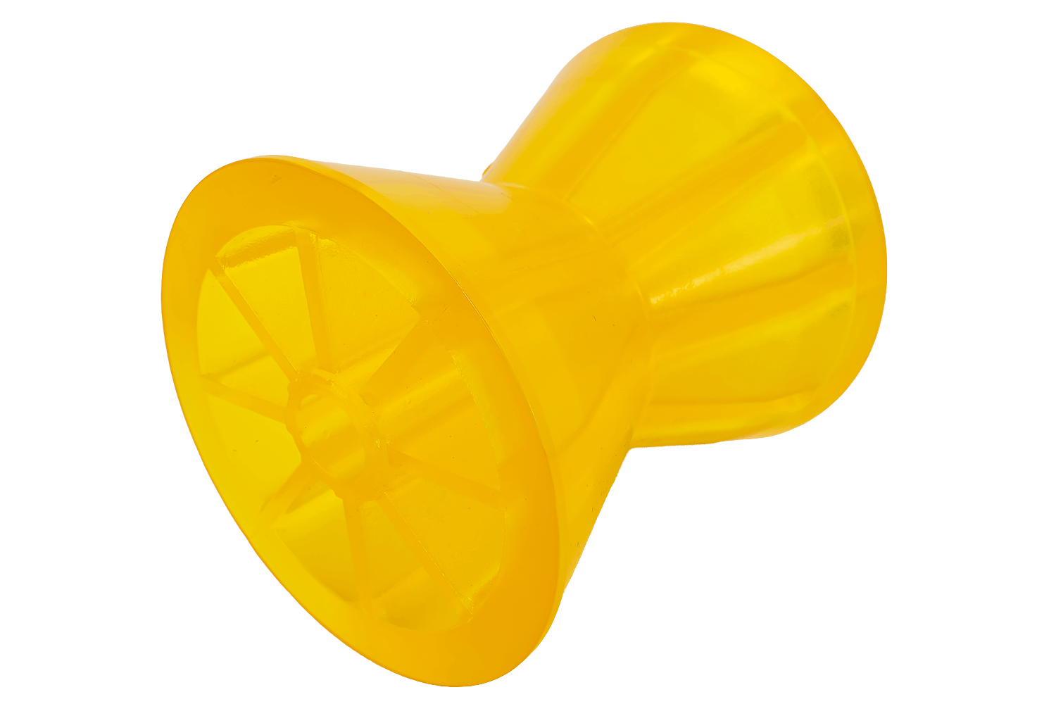 Diabolo profilé pour remorques porte bateau avec deux couvercles d'extrémité fabriqués en PVC par Knott, entreprise spécialisée dans le production des pièces détachées et accessoires pour les remorques. Largeur du diabolo 94 mm, diamètre à l'extérieur du diabolo 86 mm, diamètre à l'extérieur du cône 127 mm. Un diabolo peut supporter jusqu'à 3 tonnes.