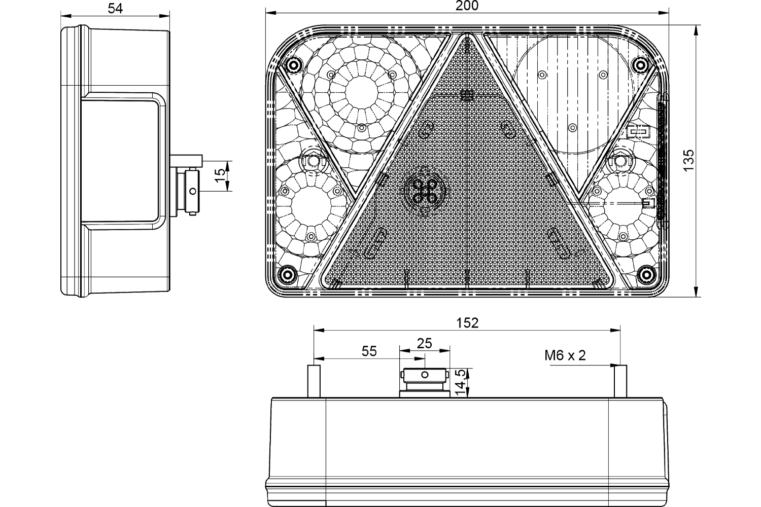 triangle réfléchissantLe feu a six fonctions : feu de position, qui assure la visibilité du véhicule lors de la conduite de nuit ; feu stop, signalant le freinage ; un clignotant, permettant d'indiquer l'intention de tourner ; antibrouillard, qui augmente la sécurité dans des conditions météorologiques difficiles, comme le brouillard ou les fortes pluies ; éclairage de la plaque d'immatriculation, qui garantit que le numéro d'immatriculation du véhicule est visible la nuit ; et un triangle réfléchissant qui augmente la visibilité du véhicule.