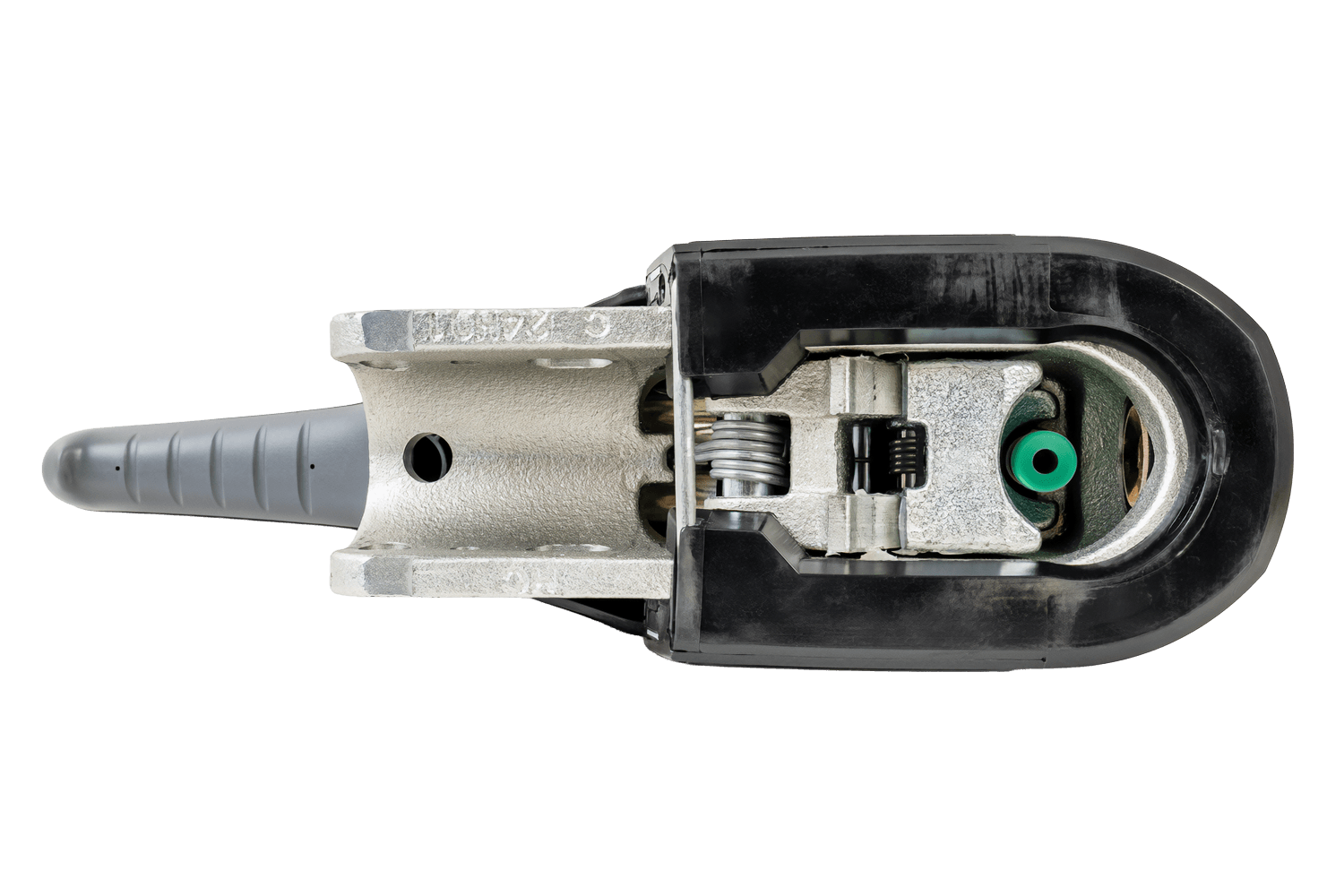 Le système de stabilisation intégré à l'attelage offre une protection efficace contre les mouvements indésirables de la remorque. Après avoir appuyé sur le levier, le mécanisme active le système de freinage, basé sur des garnitures de friction spéciales qui contrôlent avec précision la boule d'attelage du véhicule. Grâce à cette solution, les éventuelles tendances au roulis ou à l'inclinaison sont immédiatement éliminées, avant qu'elles ne se transforment en fluctuations dangereuses, ce qui se traduit par une plus grande stabilité et un plus grand confort de conduite.