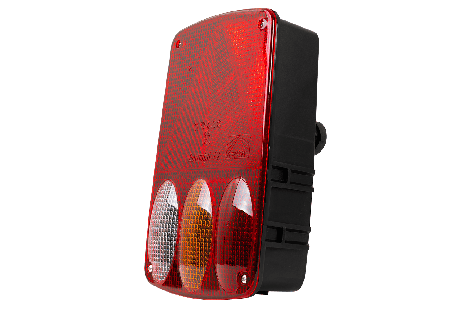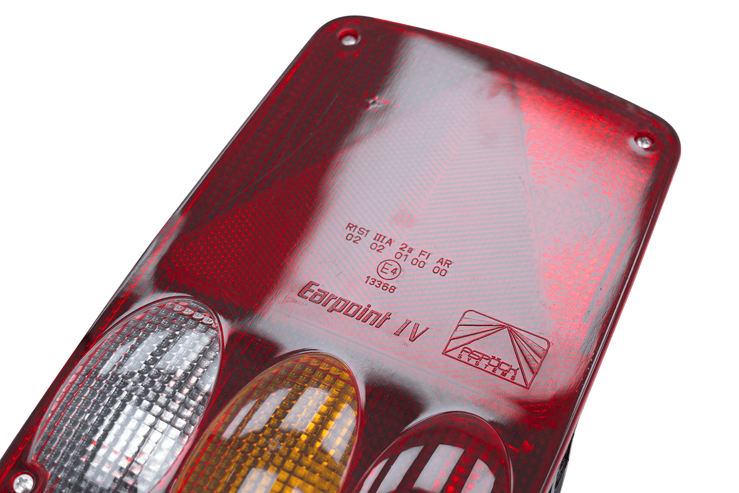 - Feu arrière Earpoint IV ASPÖCK pour installation du côté gauche. Offre six fonctions : feu de position, feu stop, feu antibrouillard, feu de recul, clignotant et réflecteur. Parfait pour une utilisation dans les remorques, camions et machines agricoles.