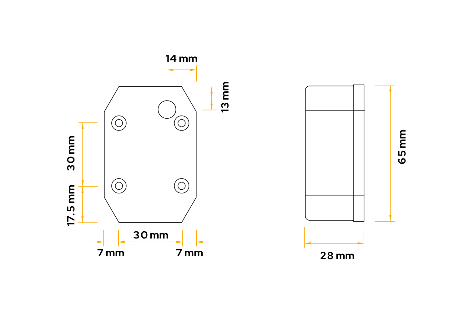 Le feu de gabarit FLEXIPOINT I d'ASPÖCK, conçu pour être monté sur le côté gauche et droit du véhicule, se caractérise par les dimensions suivantes : largeur 44 mm, hauteur 65 mm, profondeur 28 mm. Equipé d' un câble plat de 0,5 m, il permet une installation facile et rapide et peut être utilisé dans les véhicules de livraison, remorques, semi-remorques et camping-cars.