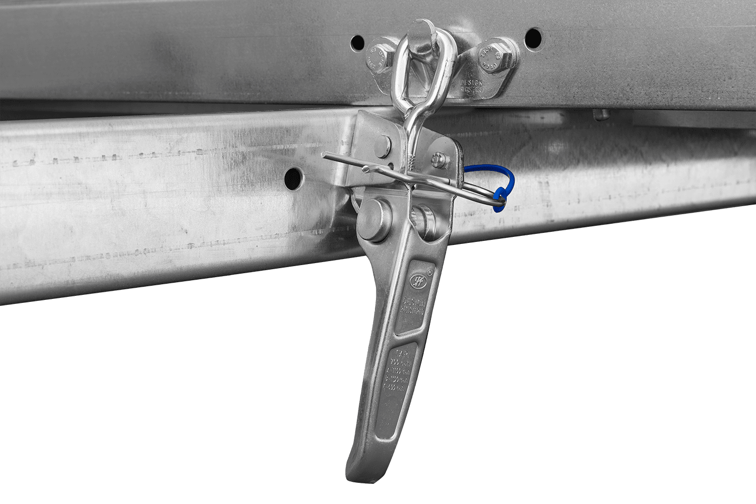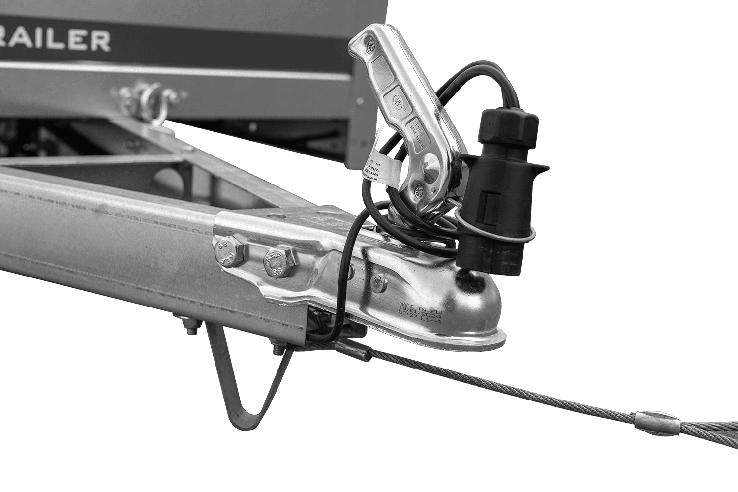 - Timon en V inclinable, qui peut être replié à tout moment sous la plaque de plancher de la remorque.