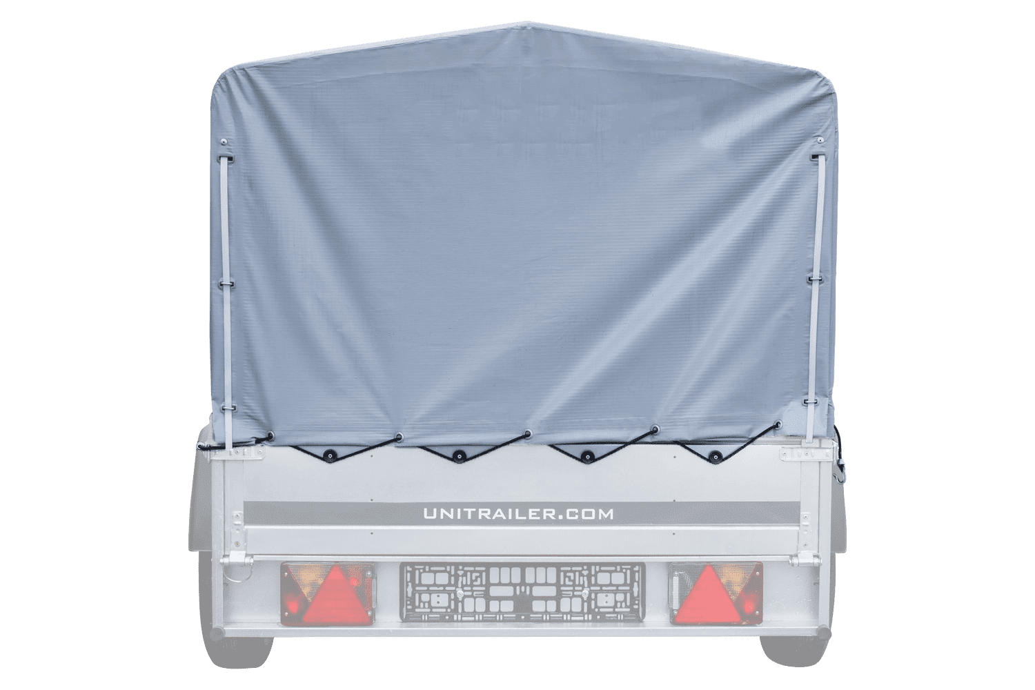 - La bâche UNITRAILER est conçue pour les remorques de dimensions 230x125 cm et pour un cadre d'une hauteur de 80 cm au point le plus haut, elle possède un toit à pignon.